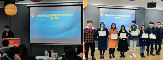 结业仪式最后由重庆原道窝克企业孵化器有限公司CEO张游瑀老师和班主任岳振远老师为优秀学员颁发优秀学员证书。