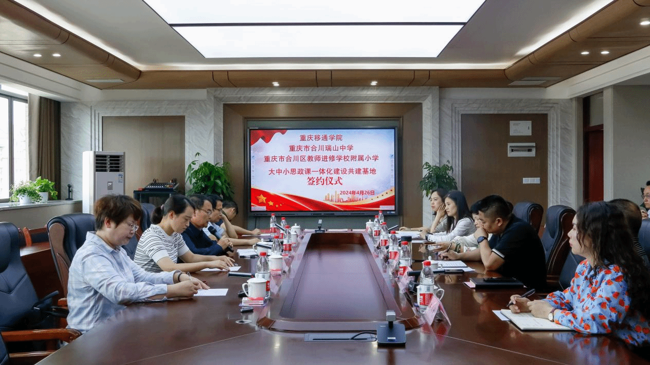 景色宜人春风起,思政深耕育英贤。思政课作为立德树人的关键课程,是一个“跨学段”的有机整体,贯穿大中小学教育和青少年成长全过程。为全面落实教育部等十部门印发的《全面推进“大思政课”建设的工作方案》以及教育部办公厅发布的《关于开展大中小学思政课一体化共同体建设的通知》等文件精神,推进构建思政育人新格局,4月26日下午,重庆移通学院、重庆市合川瑞山中学、合川区教师进修学校附属小学大中小思政课一体化建设共建基地签约仪式在瑞山中学花滩校区举行。
