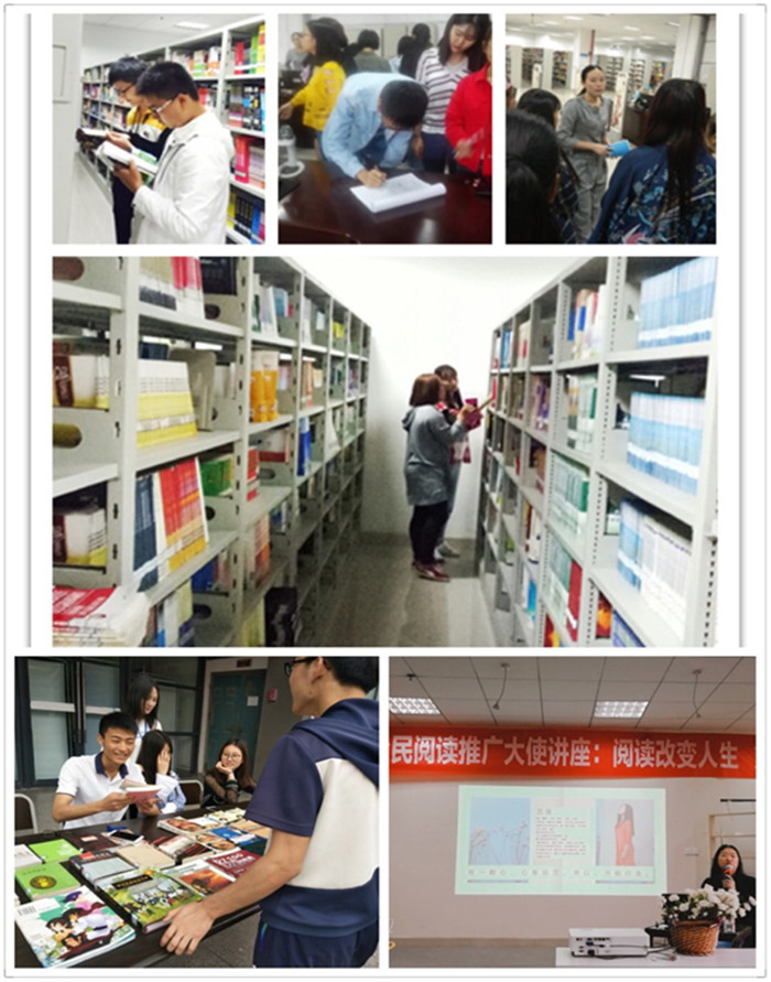近几年来,我校图书馆不断探索和挖掘阅读推广路径,打造“双子湖”文化”活动构建体系。通过新生体验课(入馆教育)、数字资源专题讲座、好书推荐等多种形式与学校的专业教育进行资源共享;充分利用导师“悦”读分享会、真人图书馆为通识教育进行进一步的视野助推;4.23世界读书日活动、我在图书馆的日子等活动开展为完满教育的团队互动添砖加瓦。经过几年的积淀,得到了广大师生读者的认同和支持,基本上形成了“双子湖”系列文化活动的框架,也建构了与“专业教育、通识教育、完满教育的融合”的融合。