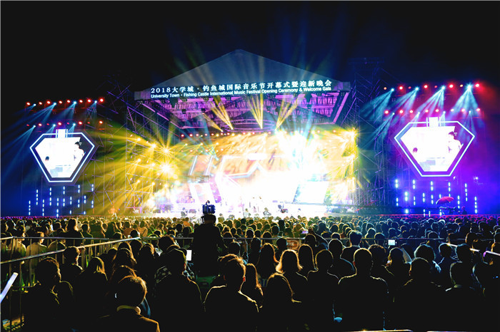 晚上,集团委员会委员代表莅临学校运动场,观看了2018大学城·钓鱼城国际音乐节暨迎新晚会。