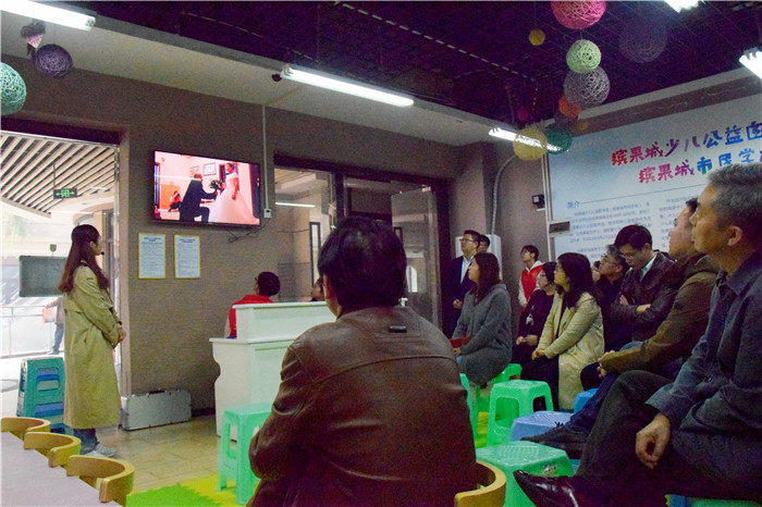 交流会结束后,集团委员会所有成员对“学府中央”市民学校与缤果城少儿公益图书馆进行了实地参观考察,通过走访考察,深入了解了重庆邮电大学移通学院在志愿服务工作开展情况,并通过对市民学校、缤果城少儿公益图书馆的观察与交流,系统了解了志愿服务项目、志愿服务支队、志愿服务阵地建设等具体举措和成效。