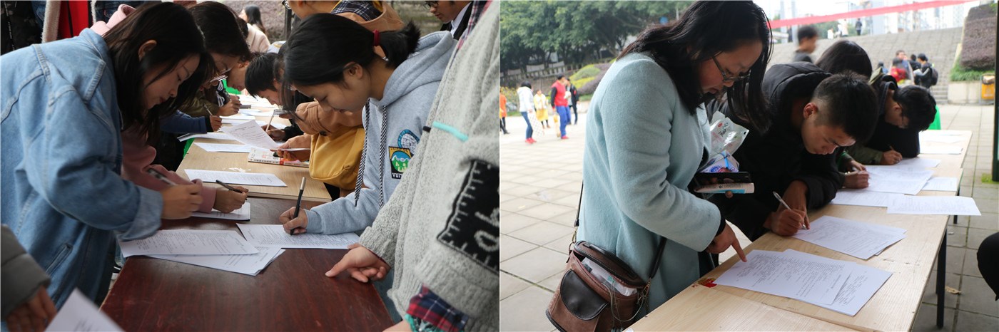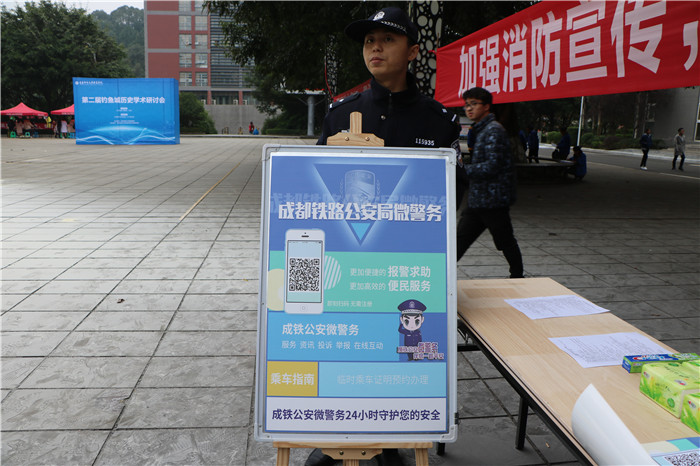 下午3点40分,保卫处联合学生处在教学楼广场开展了“119”安全消防日主题活动,深入推进校园消防安全宣传工作,通过让学生学习消防知识、参与消防演练、填写消防问卷等活动形式,提高大学生学习消防知识、关心消防工作、参与消防活动的积极性。成都铁路公安局也带来展板宣传安全知识。