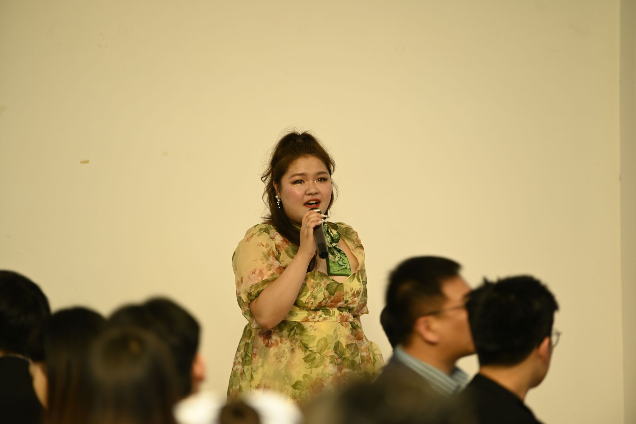 来自远景书院的路梦瑶老师和来自汇江书院的黄雨萱老师为大家带来了一段经典的歌剧表演《魅影》,同学们的灼灼目光注视着台上的精彩演出,同时一道道佳肴接连上齐,刀叉层层碰撞出清脆与汁水,伴随着歌舞,宴厅会场的氛围热烈而浓郁。