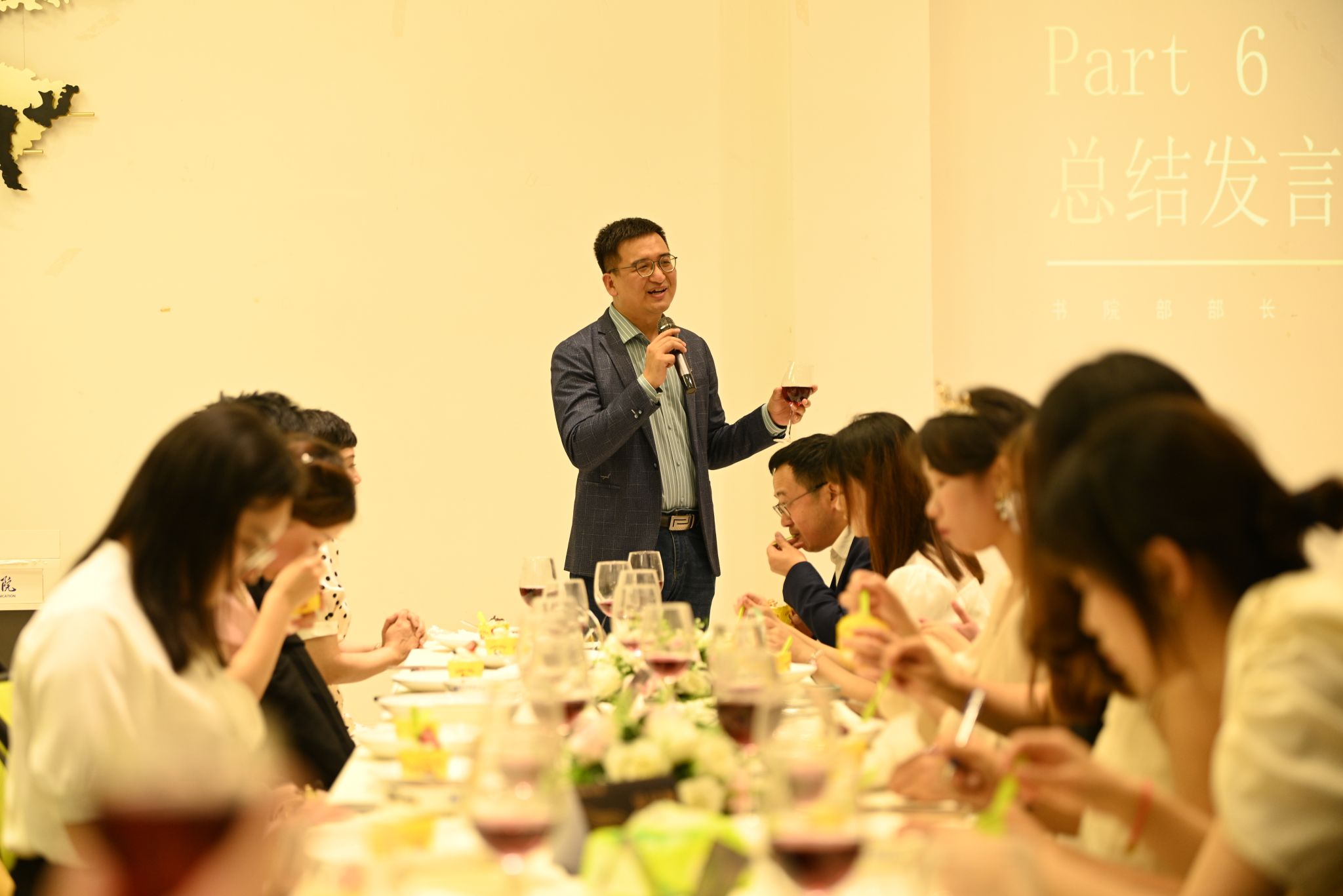 晚宴进入尾声,书院部部长穆春江老师为晚宴做总结发言。穆老师用三杯酒同最优秀的书院家人们告别。“第一杯敬移通学院、敬移通学院的书院、敬移通学院书院里面每一个可爱的你们。第二杯敬过往,因为四年前今天的高考让大家有机会一起互动交流,让我们能在移通学院里、在书院里拼搏成长;最后一杯敬未来,明天各位即将离开陪伴四年的母校,未来的路很长,希望各位能够把大学学到的成为未来走向人生新阶段的基石。鹏程万里书院梦、不负韶华移通人,干杯!”