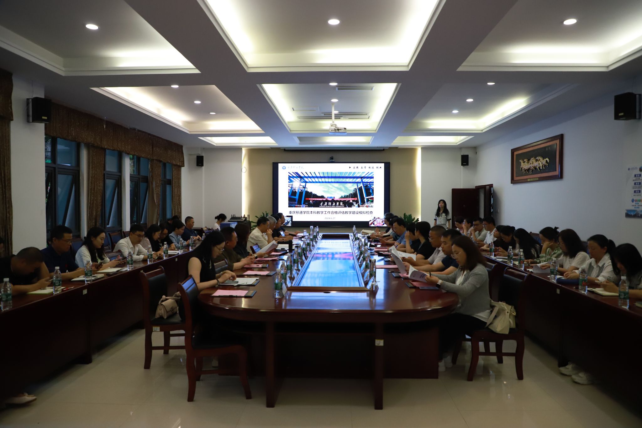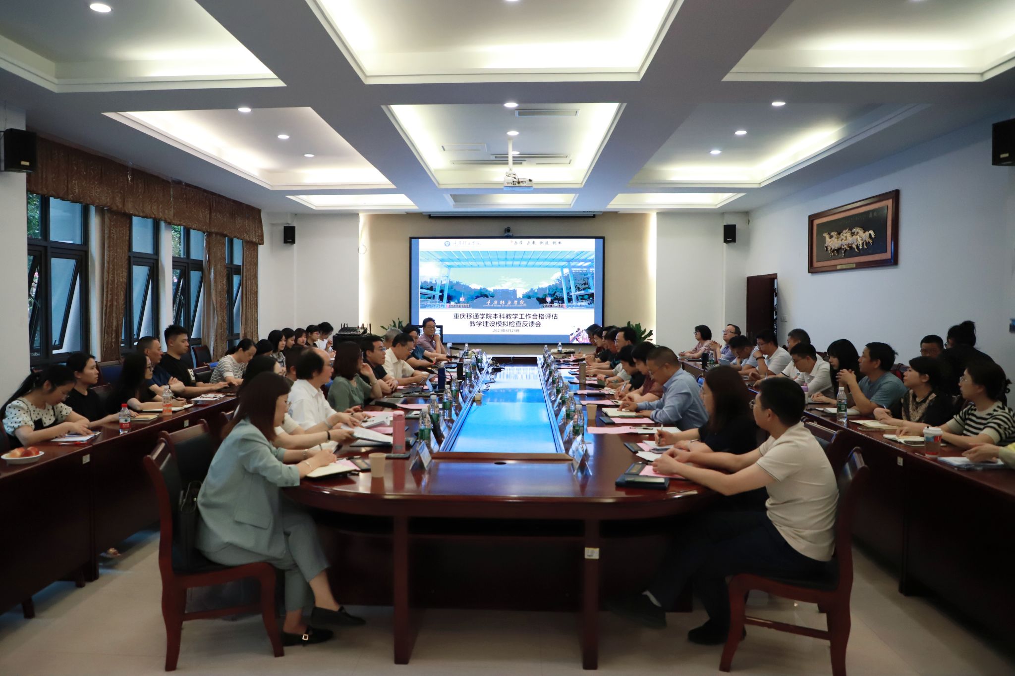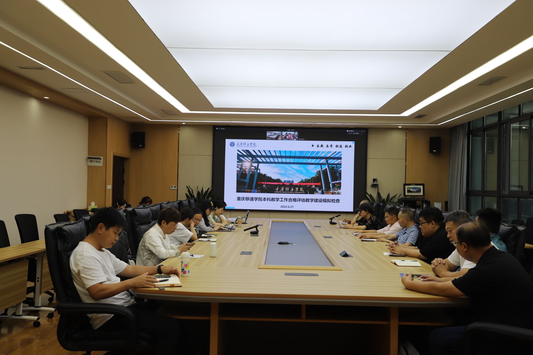 为更好推进我校本科教学工作合格评估,以评促建、高质量办学,发现前期评建工作中存在的问题,进一步明确后续整改的方向和路径,6月27日-28日,学校特邀请5位校外专家、6位集团内部专家到校开展本科教学工作合格评估教学建设模拟检查。