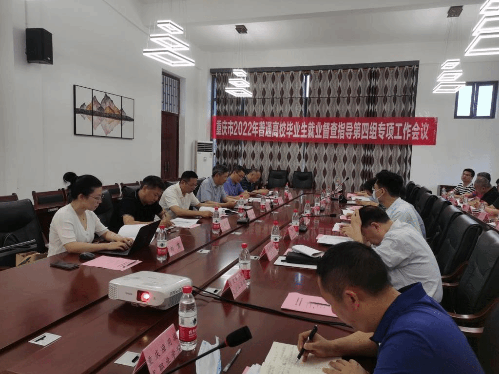 6月8日10:00,重庆市2022年普通高校毕业生就业督查指导第四组专项工作会议在我校梅若书院207会议室召开。重庆市商务委一级巡视员孙华培、市商务委市场流通处处长张建军、市商务委流通处副处长王贵、市国资委社会责任处二级调研员王海军、市工商联经济部一级调研员陈洪、市就业中心综合部副部长刘露一行6人莅临我校指导工作。就业督查指导第四组西南大学等高校代表参加本次会议,会议由市商务委市场流通处处长张建军主持。