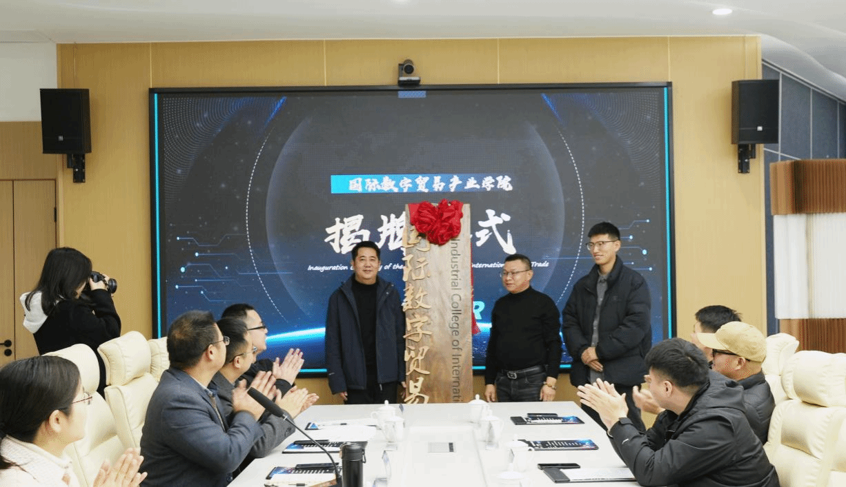 12月12日10时,重庆移通学院与重庆市合川区金星玻璃制品有限公司、重庆梦翼购电子商务有限公司共建的国际数字贸易产业学院在合川校区云端会议室揭牌成立。产业学院的组建旨在为数字贸易领域培育具有国际竞争力的创新型人才,推动地方经济数字化转型,这标志着我校在产教融合、国际合作的道路上迈出重要一步。