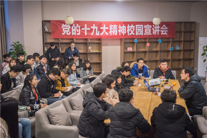 学习宣传贯彻党的十九大,提升青年思想引领。利用专业主题年级会、完满教育学生骨干培训班、学生组织例会等开展“青春喜迎十九大·不忘初心跟党走”主题宣讲交流活动46场,直接参与人数7200余人;在基层639支团支部中开展“不忘初心跟党走”主题团日活动,覆盖全校15271名团员;组织学生干部、学生社团负责人、青年志愿者和团员代表集中收看党的十九大开幕式;校院两级组建11支党的十九大精神青年宣讲团,通过举办专题报告会、研讨会、讲团课、座谈会和面对面互动交流等多种形式,深入基层团支部进行宣讲。