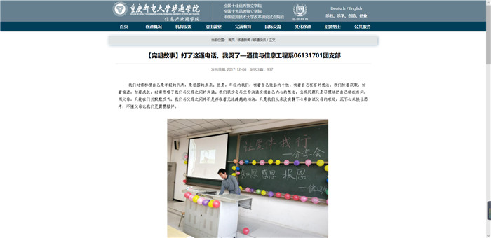 重庆邮电大学移通学院团委在团市委、校党委的领导下,持续纵深推进共青团改革,牢牢把握共青团工作的根本任务、政治责任和工作主线,在重庆共青团“1234”工作思路的指导下,健全组织体系、创新方式方法、提升服务能力,结合学院实际情况围绕“坚持引导青年思想、全面服务学生成长”谋实事、出实招、求实效,并探索总结各项工作的有效路径,现将部分汇报如下: