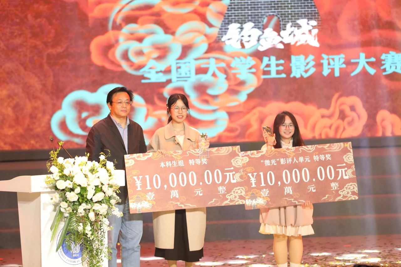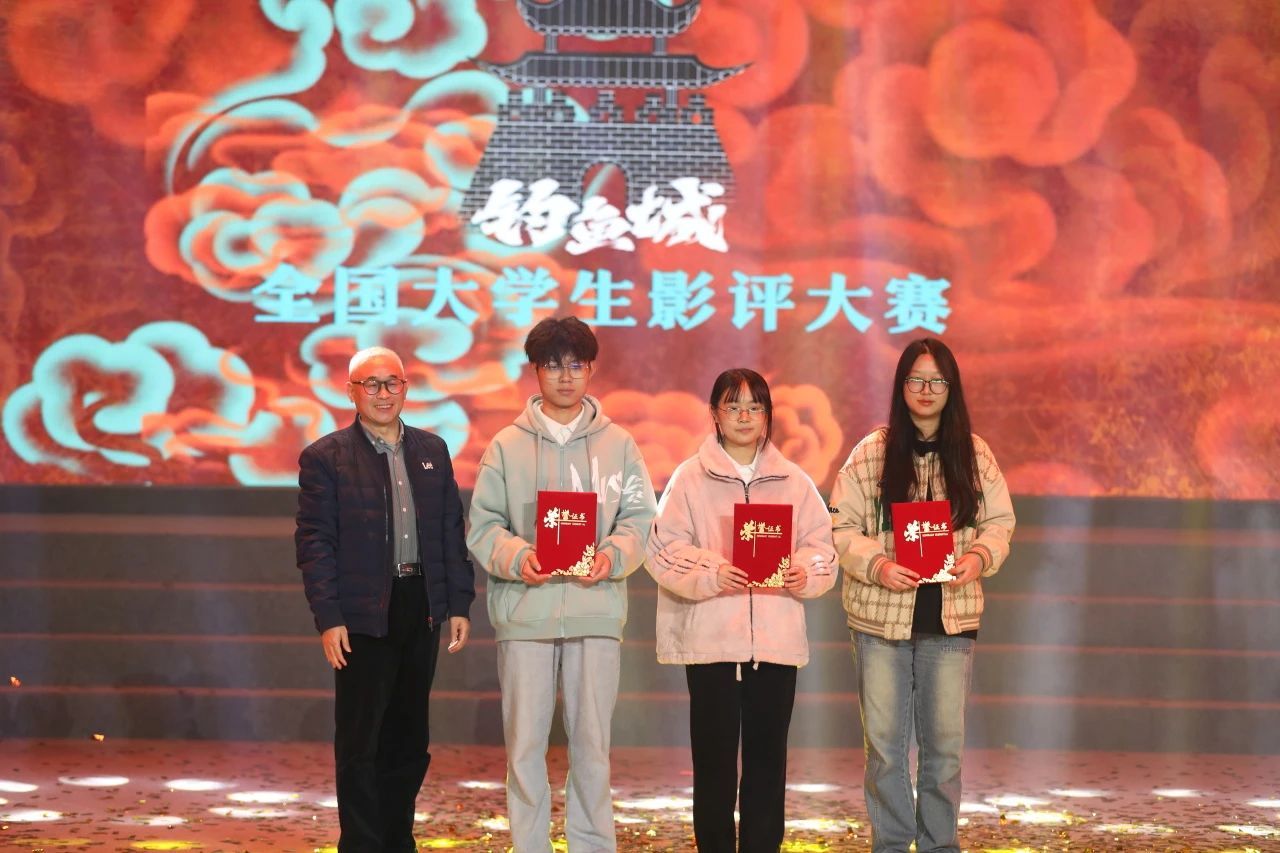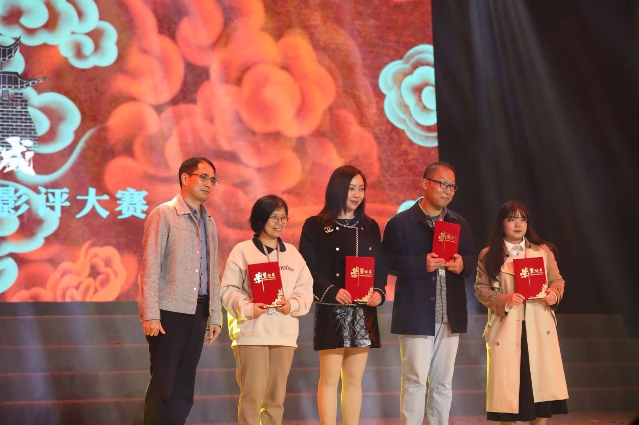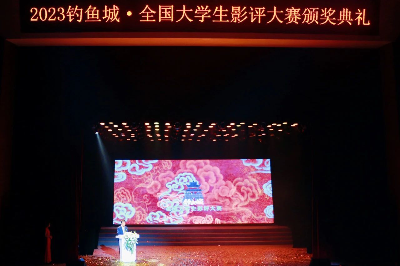 下午4时,大赛颁奖典礼在缤果大剧院举行。2023钓鱼城·全国大学生影评大赛评委会主席,电影家协会副主席、中国文艺评论家协会副主席,清华大学教授尹鸿;重庆广电集团党委委员、副总裁,重庆电影集团董事长兼总经理,重庆市文联副主席、重庆市影协主席黄翔;重庆市委宣传部电影处处长刘贵明;电影学者、专栏作家周铁东;本届大赛评委会副主席,西南大学文学院教授,华语电影研究中心主任刘宇清;影评人、作家,本届大赛评委会副主席《看电影》杂志主编阿郎;重庆市文联秘书长周和平;合川区委宣传部副部长吴亭亭;合川区文联主席李卫明;重庆市文艺评论家协会秘书长王贞华;重庆市电影家协会驻会负责人沈琛;上海戏剧学院教授,编剧,导演万传法;《贵州大学学报》(艺术版)执行主编;贵州大学美术学院教授刘剑;上海师范大学影视传媒学院教授龚艳;重庆大学美视电影学院副教授鲜佳;著名电影自媒体人,影评人桃桃林林;中国新商科大学集团总裁王征;重庆移通学院校长吕翊出席。