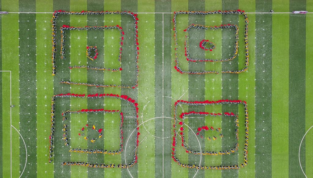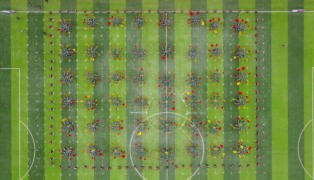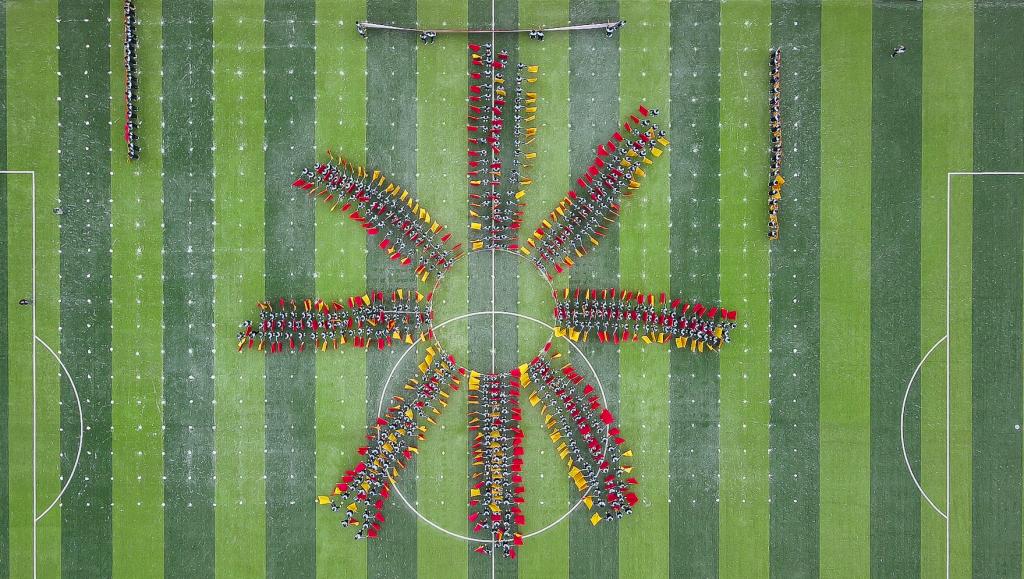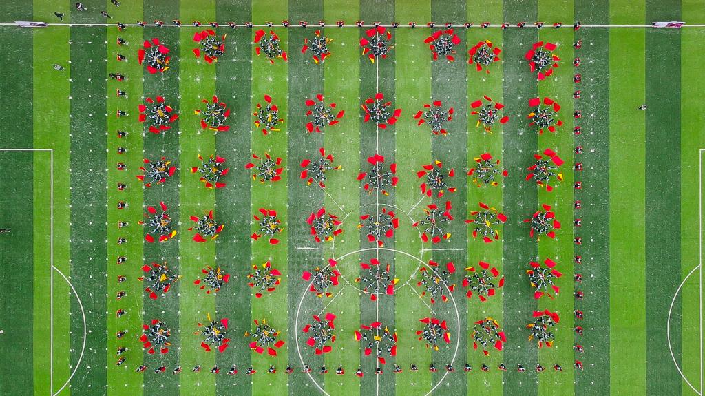 上午8点,随着激昂雄壮的运动员进行曲响起,开幕式拉开帷幕。各代表队整装待发,精神抖擞,整齐有序进入运动会场。标兵就位,国旗班步伐整齐有序、英姿飒爽;仪仗队鼓点庄重响亮,演奏着青春的诗篇;红旗班充满朝气,手中的红旗是心中燃烧的梦想的火。9支学院代表队和12支教工代表队随着进行曲的节奏有序经过主席台接受检阅,并通过精彩的表演,展现我校师生的青春活力和学院部门独特的魅力。其中天渠书院通过走位摆出“T、Y”字符,展现我校“四位一体双院制”人才培养模式,移通学子在此种特色教育模式下,不断开出一朵朵“完满之花”。