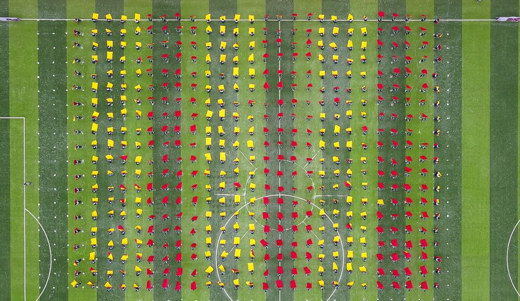 紧接着,由全校各学院共同带来了大型团体操表演《盛世欢歌》,三个不同的篇章全方位、多层次展示移通学院四位一体双院制的育人成果,阳光体育积极向上的活力精神与当代移通学子淳淳的爱国情怀。其中由竞技体育中心刘莎莎导演编排,淬炼·国际商学院、大数据与软件学院、外国语学院、艺术传媒学院共同组成的580人表演方阵带来精彩绝伦的演出,他们手拿双色旗帜,在交响乐背景音乐中,鲜红和金黄两种颜色组成的旗帜随着队形走位变幻,上下翻卷,从菱形变为方形,形成翻涌的海浪。580名同学幻化成了一条条龙的形象,代表着我们炎黄子孙华夏儿女,依旧不忘初心、牢记使命,为伟大的中国梦而奋斗。彩旗在挥舞,队形在变化,乘风破浪,扬帆启航,移通学院,奋发图强。我们必将传承“乐教乐学 创造创业”的校训,在乘风破浪中开启新的征程!