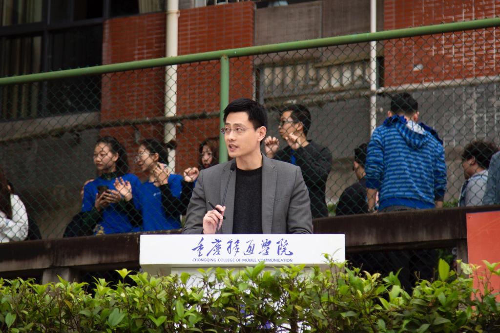 表演渐入尾声,副校长周伟代表运动会组委宣布重庆移通学院第十三届春季田径运动会正式开幕。