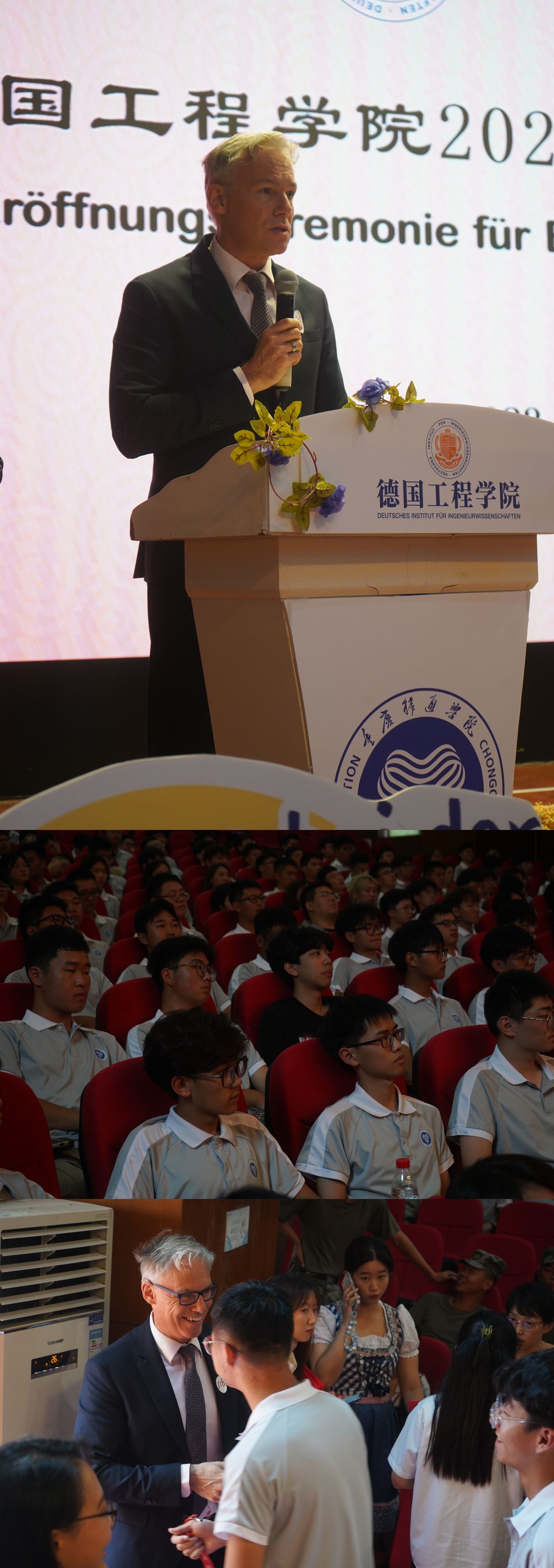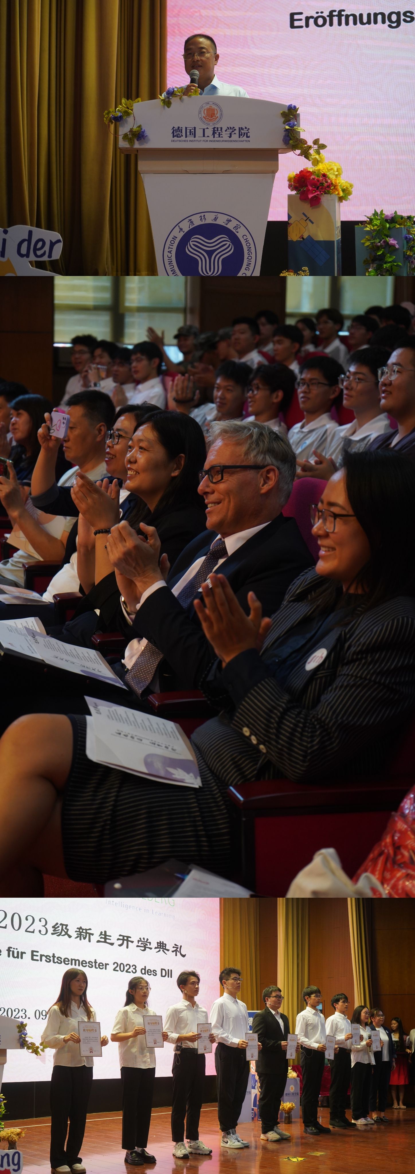 9月4日15:00,海德堡应用技术大学代表团参加了德国工程学院2023级新生开学典礼。Nils Albrecht教授就中德两国合作、工程学专业及中德项目的优势等方面作了详细地分享,同时与现场的学生和家长进行交流。通过教授的分享与交流,让新生对中外合作办学项目德国高校情况、发展前景有了更清晰的认识,家长也对孩子的未来充满了信心。典礼最后Nils Albrecht教授希望所有学生都能坚定自己选择,勇敢追梦,期待与大家在德国相见。