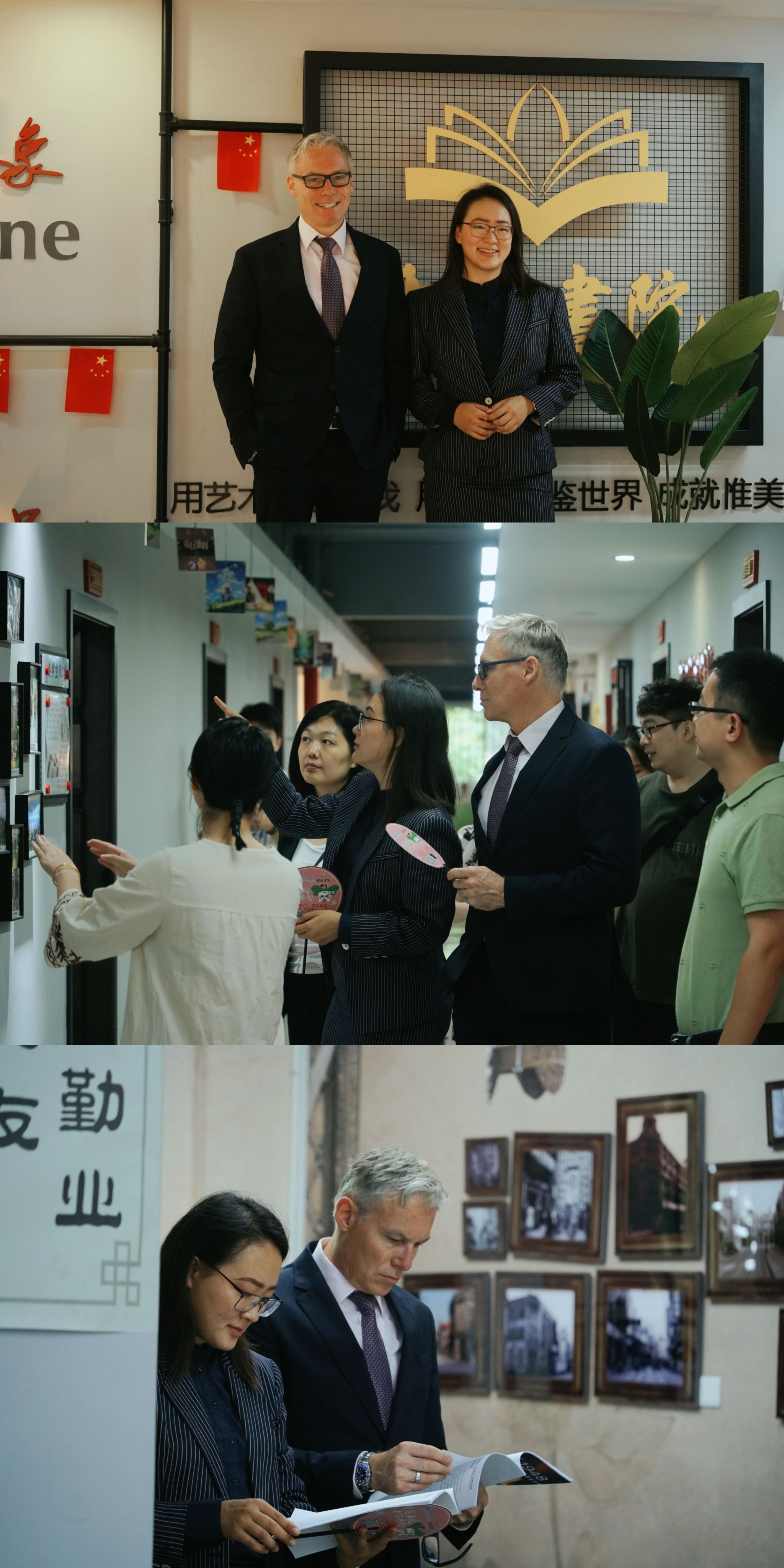 为贯彻落实学校国际化发展战略,打造亚洲最大的德国留学基地。2023年9月特邀海德堡应用技术大学代表团来我校交流。9月4日9:00,德国工程学院副院长李伟光陪同海德堡应用技术大学中国项目负责人Nils Albrecht教授、项目助理马晋妍女士,德中教育文化交流协会海德堡项目负责人任立卫女士一行人参观学校爱莲书院、北山书院、天空书院、南湖书院等书院,Nils Albrecht教授对于我校社区文化式书院及国际化氛围高度赞赏和认可。