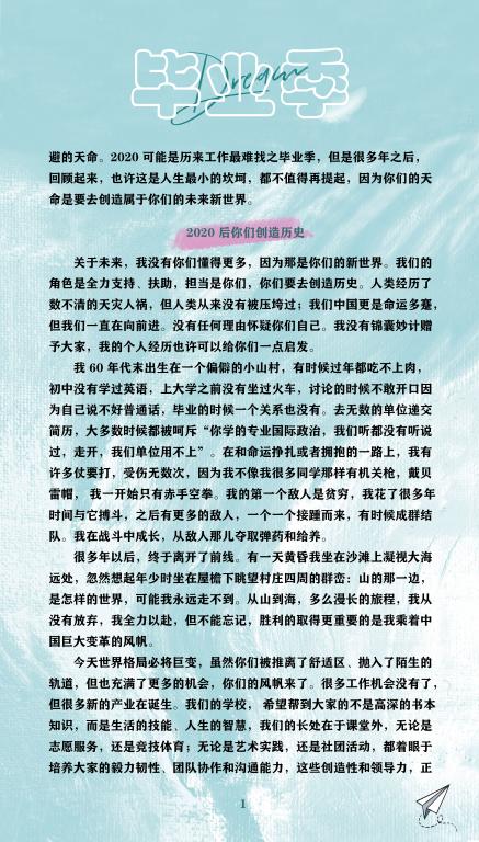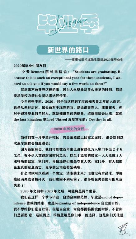 新世界的路口——董事长彭鸿斌先生寄语2020届毕业生