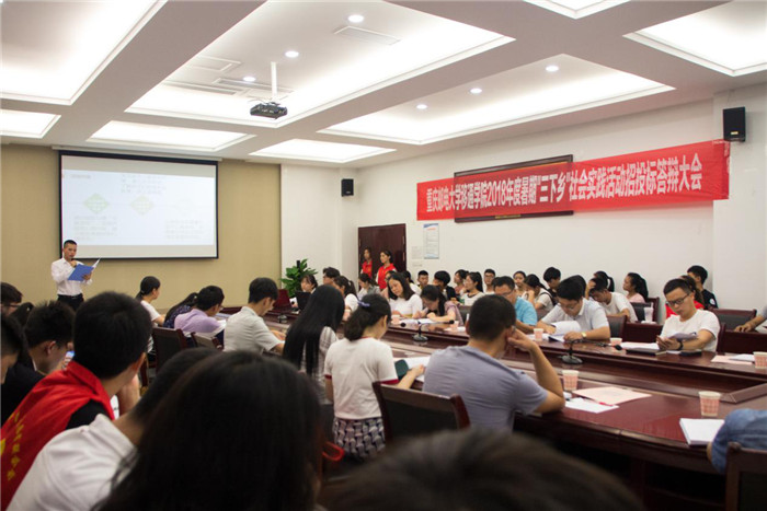 今年三下乡继续采用招投标形式开展,以“灵活组队、项目运作、注重实效、优胜劣汰”的组队方式面向全校公开招募下乡团队,通过对团队申报书的审查和现场答辩拟组建15支校级团队(包括市级团队)。7月2日晚,2018年度暑期“三下乡”社会实践活动招投标答辩大会在行政楼107会议室如期举行。莅临大会现场的评委老师有校党委组织宣传部部长、宣传新闻中心主任苏述庚以及校院两级志愿服务版块指导老师们。