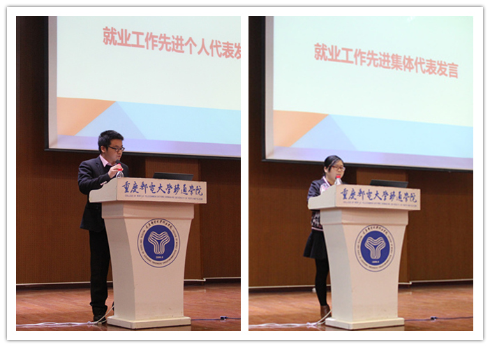 毛敏老师作为就业工作先进集体代表发言,她分享了她的“五心”换“五赢”的成功经验。即:热心、爱心、细心、诚心、责任心;学生赢、家长赢、学院赢、工作赢、自己赢。以“人才培养质量”和“就业竞争力”为突破口,实现高质量就业。纵观外国语言文学系历年就业数据:12年08英语专业就业率100%,13年就业率99%,14年就业率98.87%,2016年就业率97.66%,这些数据足以说明,外国语言文学系的就业为学校赢得了口碑。以“思想引导”和“心理疏导”为着手点,重塑积极就业心态。面对就业市场残酷竞争时,多数学生会选择退缩,不敢积极主动去寻求就业机会。我们的就业工作就要从学生思想和心态上及早着手,对症下药。以“增强就业指导”和“服务理念”为宗旨,利用各种资源,积极拓宽就业渠道。以“全面把控”和“细节把握”为落脚点,步步推进就业工作。