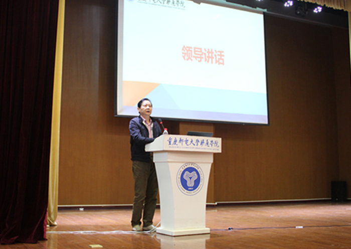 在会议的最后,学院院长张德民教授作重要讲话,他对上学年的就业工作给予了充分的肯定,对在就业工作中做出努力的老师和同学们表示衷心的感谢,对获奖的先进集体和先进个人表示热烈的祝贺。