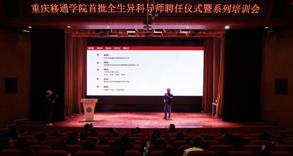 仪式伊始,书院部副部长穆春江对首批异科导师选拔情况进行了总结汇报。经过前期遴选,共聘任合川校区异科导师163人,綦江校区异科导师100人,异科导师团队的组建,意味着“异科导师制”工作正式踏上新的征程,全面助力移通学子成长成才。