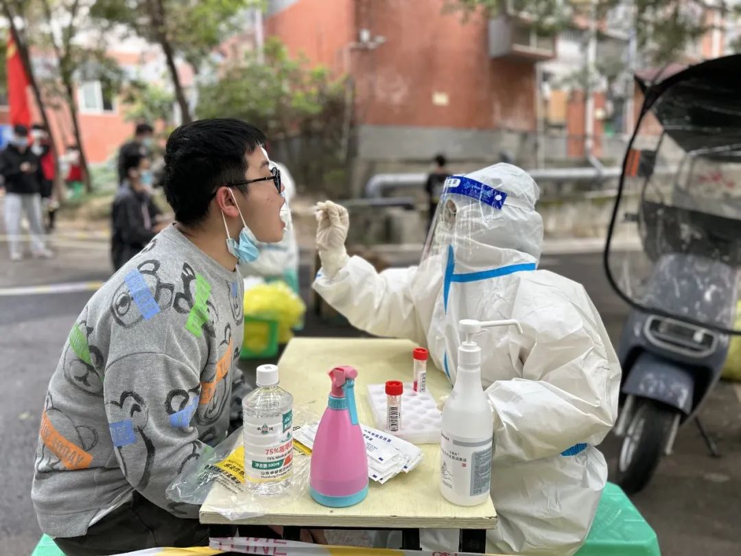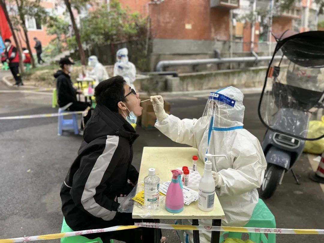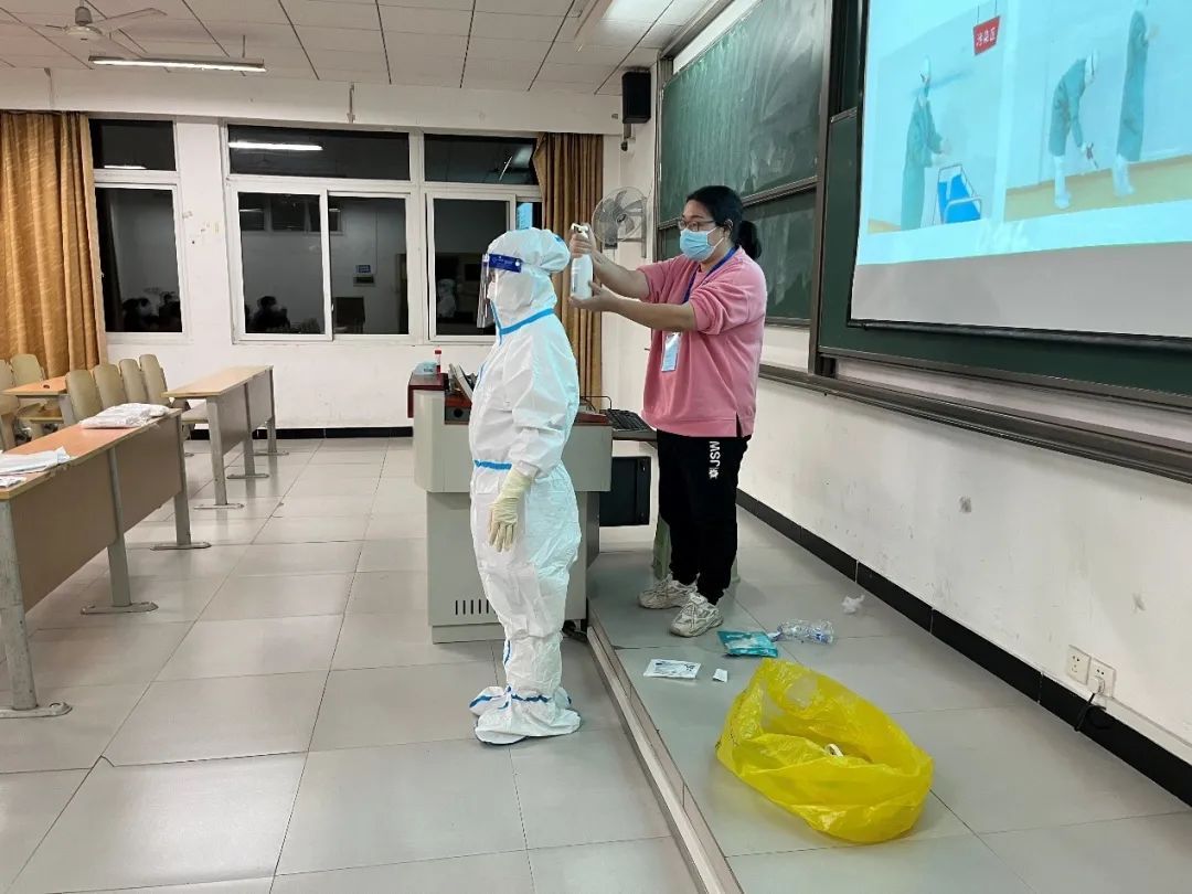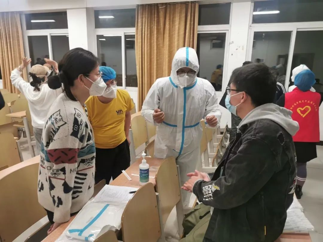 脱下红马甲,套上白色防护服,既能保障学生生活需求,也能做好疫情防控最前端的守门员,全校八个网格100余名教师志愿者响应号召,主动参与到核酸检测采样工作中来。