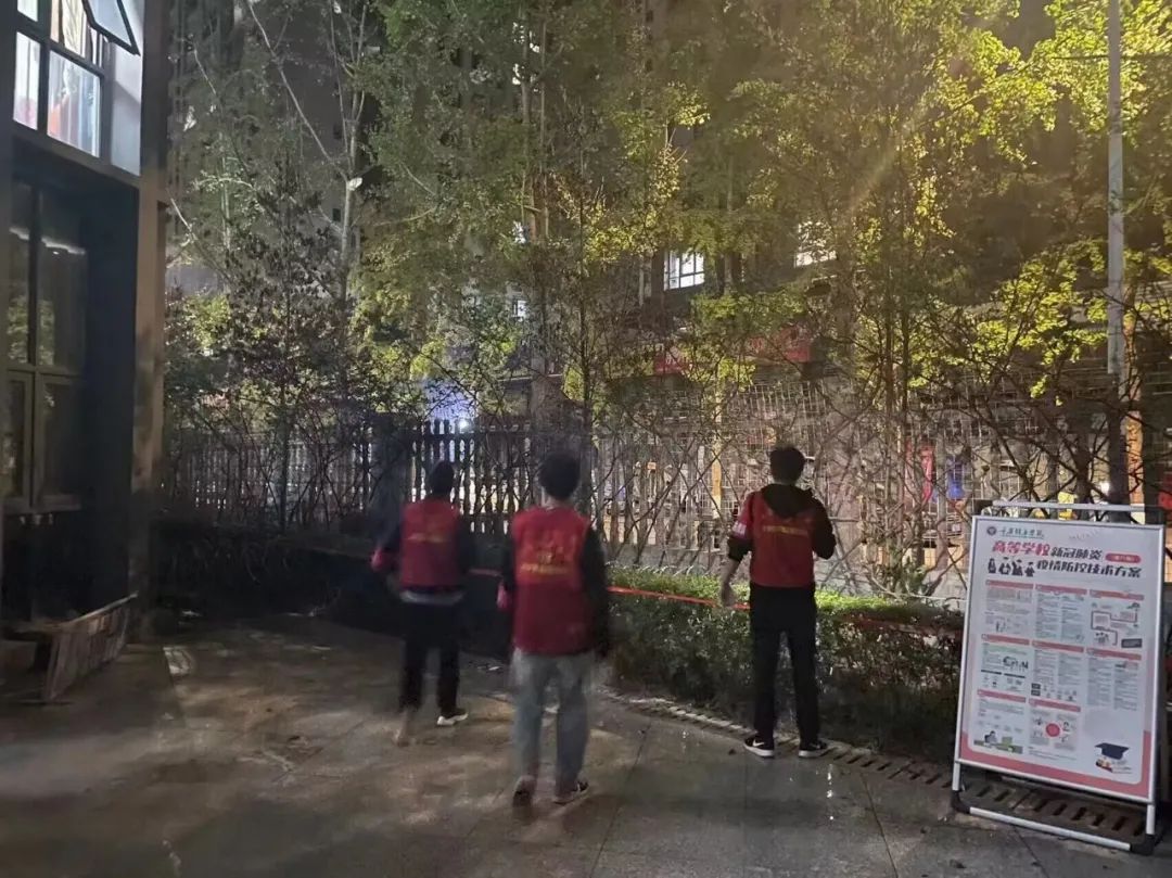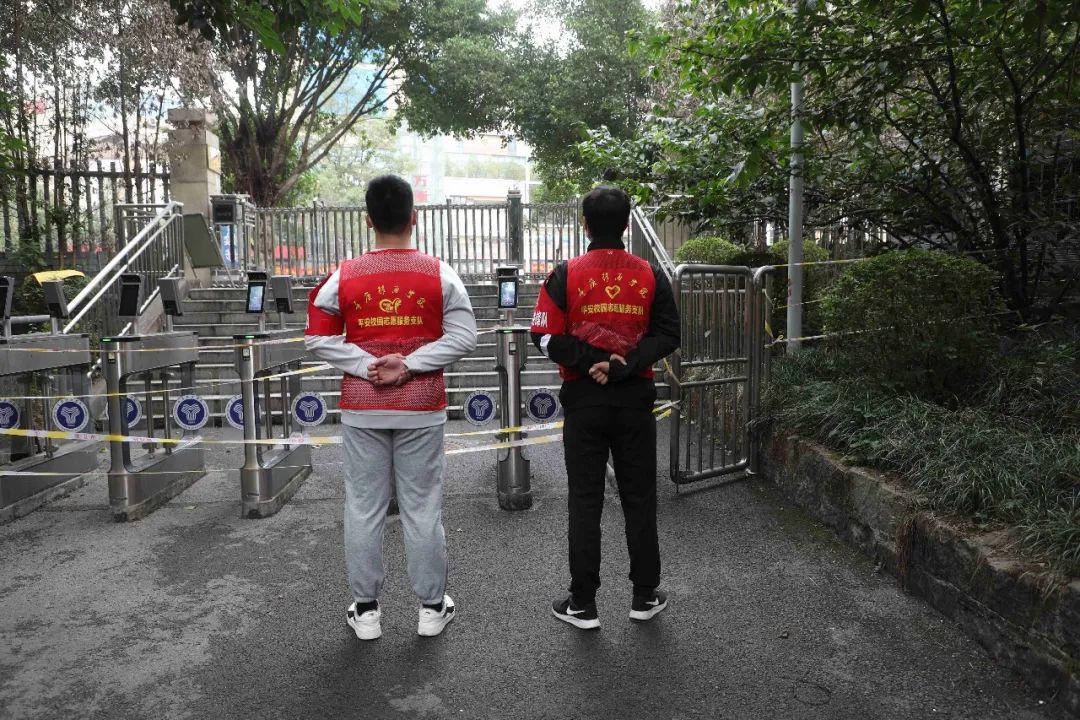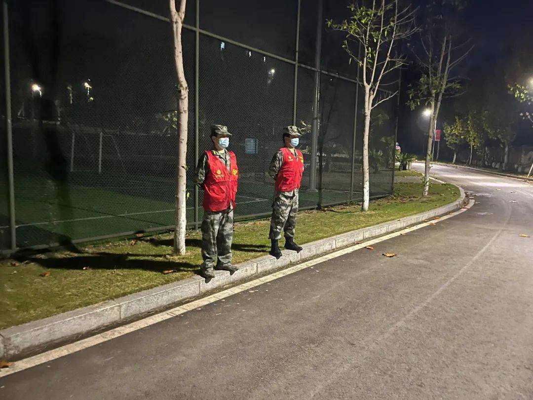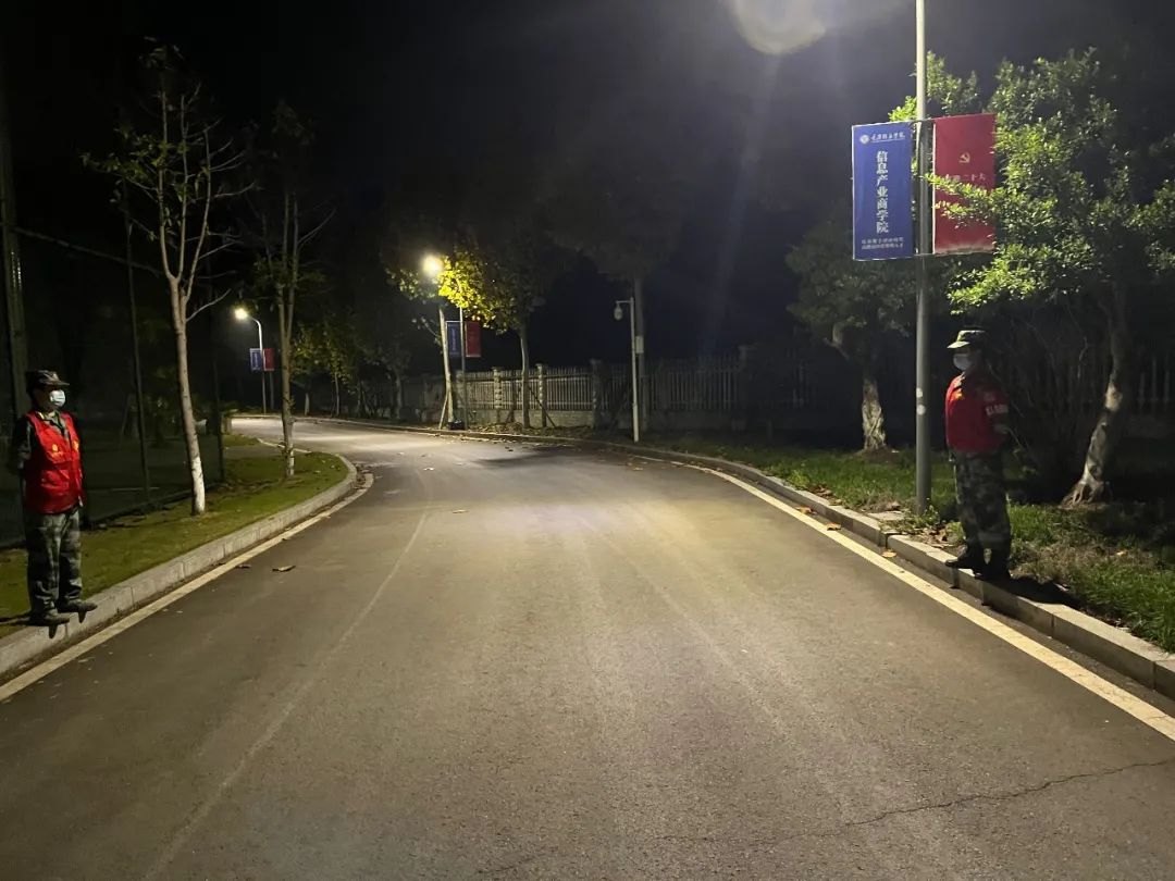 在学校保卫处和营地教育中心的共同指导下,主动请战的退伍军人学生组成志愿者队伍,参与到校园管控工作中来。60名退役军人学生加入到志愿者队伍中来,主要工作是协助保安加强重点地段的巡逻,及时制止拿取外卖、快递的行为,及意图翻墙外出的行为。在学校南北校区开展巡逻工作,沿着学校边界共计4条线路,每条线路几乎覆盖半个校区,每条线路2名志愿者,一天6个班次轮换。