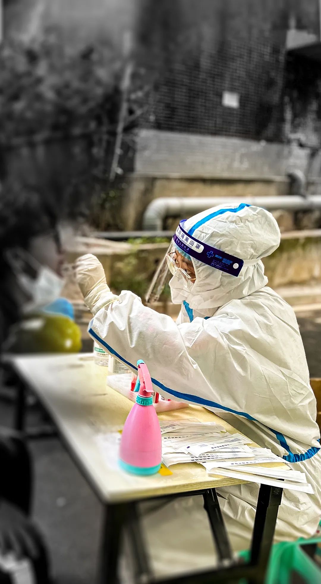 穿上防护服的核酸检测教师志愿者