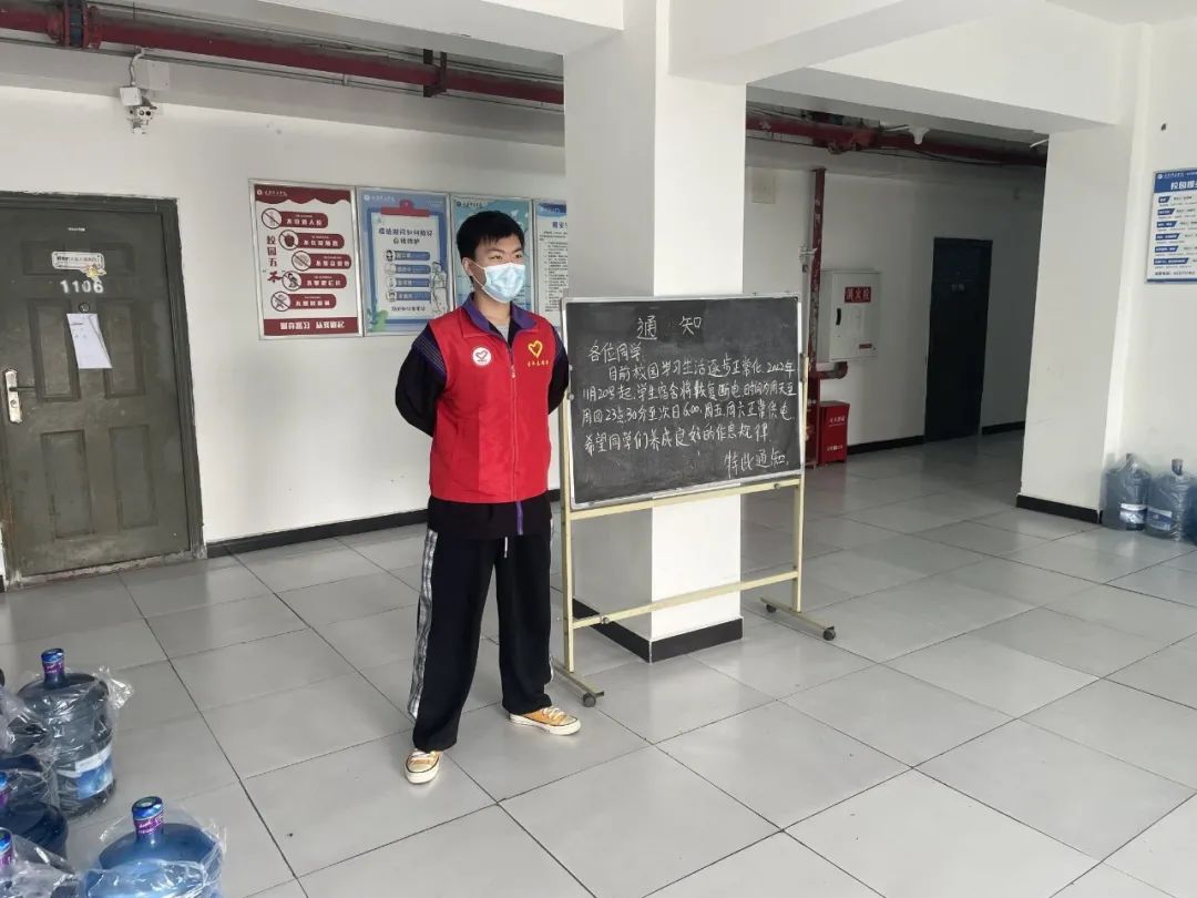 2021级资产评估专业彭宁奇同学和寝室同学一起报名成为了楼栋管理志愿者,他表示:“我们寝室六人在前段时间报名参加了志愿者,我们的初衷很简单,就是想去帮帮忙。我们的工作主要是组织同学们下楼做核酸以及维持核酸现场秩序,在我工作的时候,大多数同学都会提前在寝室整齐排好队伍等着我测体温,在我给他们测完体温后说一句谢谢。每天的志愿者工作都是伴随着感动与苦恼结束,但是对我而言,我所做的一切,所得,所不得,都是我心安理得。”