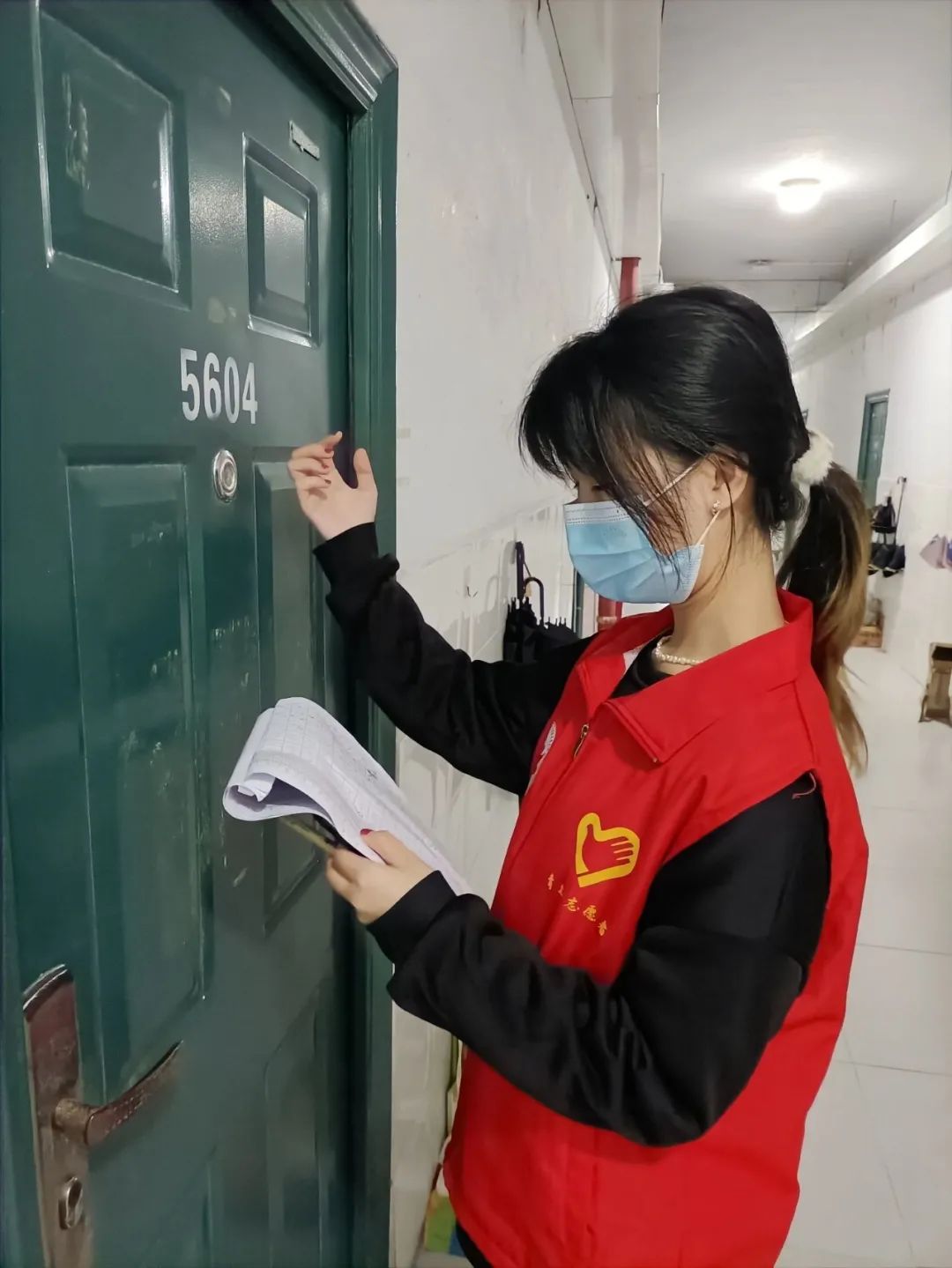 穿上红马甲的学生志愿者