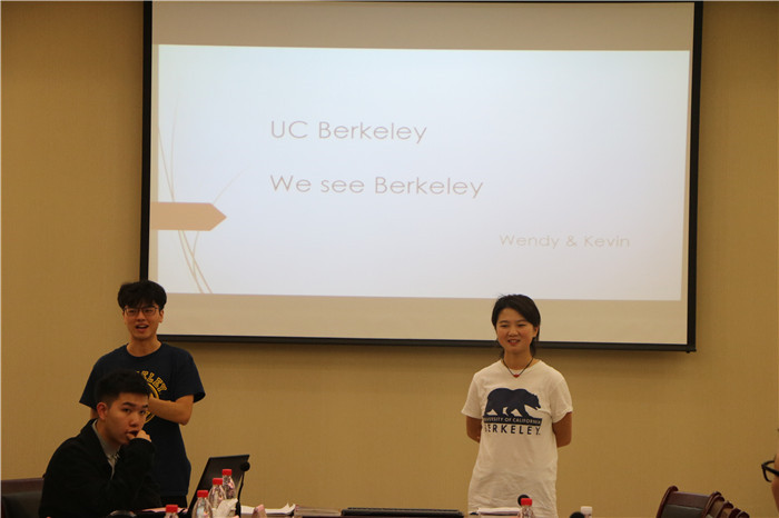 2018年暑期赴伯克利的两位学生代表侯美钊、吴雅倩同学在会上汇报分享了自己的游学经历及收获心得,他们的演讲充满活力,英文口语表达流利顺畅。他们讲述的一个个伯克利小故事,让在座的同学身临其境地感受到了美国一流名校的魅力,大家也都想踊跃一试,得到赴名校交流学习的机会。
