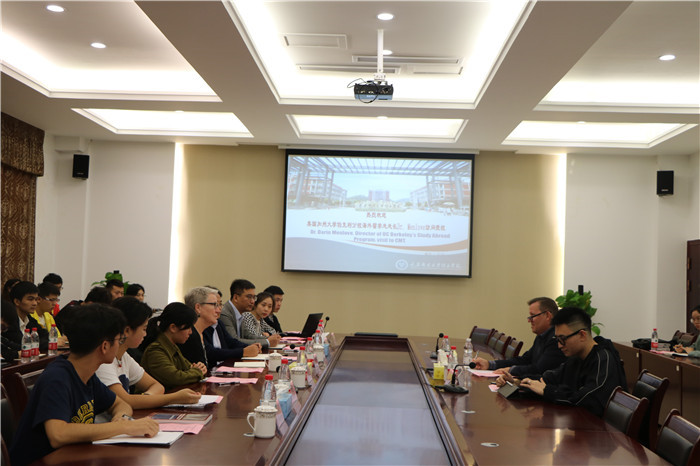 2017年11月,位于世界大学排名前列的美国加州大学伯克利分校与我校签订协议,建立了友好合作交流关系。为继续加深双方的交流与合作,促进移通学子对伯克利项目的了解并提高其参与性,2018年10月18日,美国加州大学伯克利分校海外留学处处长Dr. Darin Menlove来到我校,在行政楼107会议室与校领导代表,老师以及学生们展开了一场形式活泼、内容丰富的交流见面会。参与本次见面会的有校长助理兼国际处处长尹浩亮、远景学院院长Dr. Gwen Bennett关玉琳、远景学院执行院长皮若兰、书院部教师代表穆春江、中德应用技术学院雅思教师杨芮、国际处外事专员韦橙橙、以及曾赴伯克利分校交流的学生代表和各书院学生代表等。