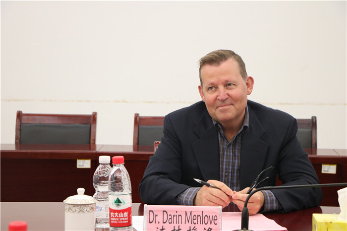 会上,远景学院院长关玉琳对Menlove处长的到来表示了诚挚的欢迎,并对我校办学概况、院系专业、办学特色、办学成果做了简要介绍,其中特别提到了我校的完满教育、远景学院等。关院长还介绍了我校国际交流与合作情况,她说:“我校与美国哥伦比亚大学、美国北伊利诺伊大学以及英国贝尔法斯特女王大学圣玛丽学院等高校都保持着不同层面的合作与交流。虽然我校是一所年轻的高校,但办学目标明确,办学思想超前,目光长远,近两年更是飞速发展,已逐渐成长为一所办学特色鲜明、办学成果显著、国际化水平较高的高校,这也是我校能与美国加州大学伯克利分校、哥伦比亚大学等世界顶尖名校合作交流的重要原因。”