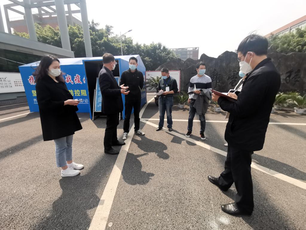 4月8日,以重庆市教委语言文字管理办公室主任夏蒂为组长的督导组一行人来到我校,在我校校长助理周伟等领导陪同下,对学校新冠肺炎疫情防控暨2020年春期开学准备工作进行了督导检查。专项督查组通过现场走访,对学校疫情防控工作给予了充分肯定,并就下一阶段工作的开展提出了指导意见。
