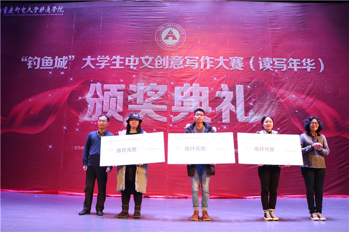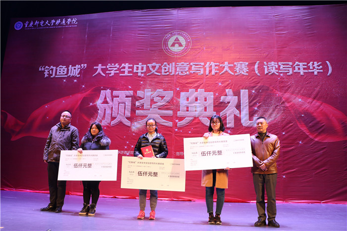 12月13日晚,国内知名作家、评论家、出版家、学者,和400余名学生欢聚缤果大剧院,参加首届“钓鱼城”大学生中文创意写作大赛颁奖盛典。全球2071部作品角逐20万奖金,来自重庆师范大学涉外商贸学院的何芷诺凭借《晚风戏声》获得“非虚构”作品一等奖和5万元奖金,“虚构”作品一等奖空缺。重庆邮电大学移通学院院长张德民教授、著名作家毕飞宇、重庆市作协主席陈川、合川区委宣传部长卢波出席典礼并讲话。