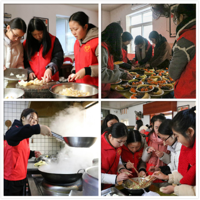 (移通志愿者为老人们准备水果拼盘、枸杞雪梨汤、包饺子)