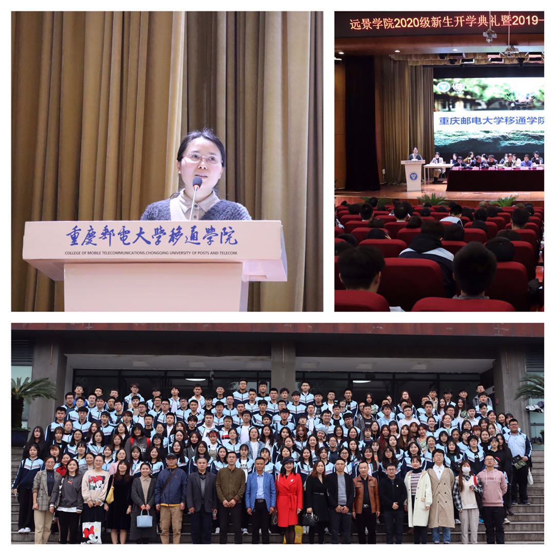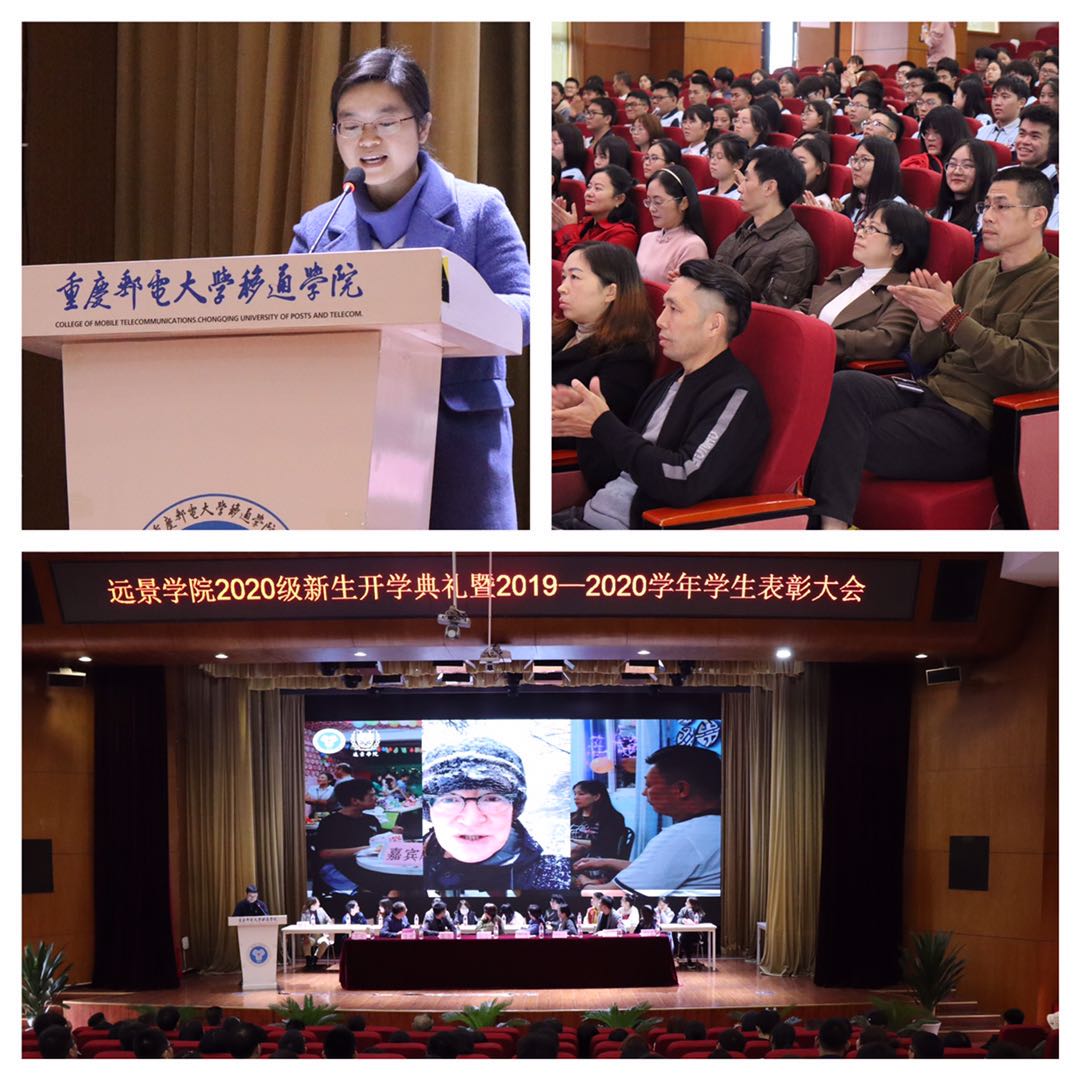 10月21日下午14时,远景学院2020级新生开学典礼暨2019-2020学年学生表彰大会在下里巴人剧场隆重举行。重庆邮电大学移通学院校长助理孙玺老师、刘枚老师,学生处副处长陈帅老师,书院部副部长穆春江老师,远景学院执行院长皮若兰老师以及远景学院全体教师、高年级学生代表、2020级全体同学和新生家长代表出席了本次大会,会议由远景学院学工副院长李军主持。