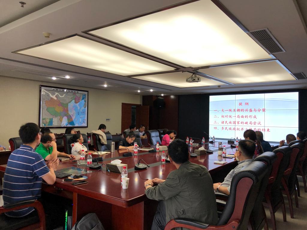 其后,位光辉副院长为区钓鱼城事务中心、钓鱼城文旅公司相关领导、员工30余人作了题为“宋蒙战争前的中国历史局势”的学术讲座。位院长从大一统王朝的兴盛与分裂、国内相对统一格局的形成、诸民族国家的统一尝试、多民族政权并立格局的结束等四方面入手,以大历史和文明史观的角度讲述了宋蒙战争全面爆发前数百年间中国历史局势的兴亡变迁,分析其深刻根源,进而提出自己对宋蒙钓鱼城战争性质和影响的见解和思考。位院长的讲座条理清晰、论证严密,受到了在座听众的一致好评。