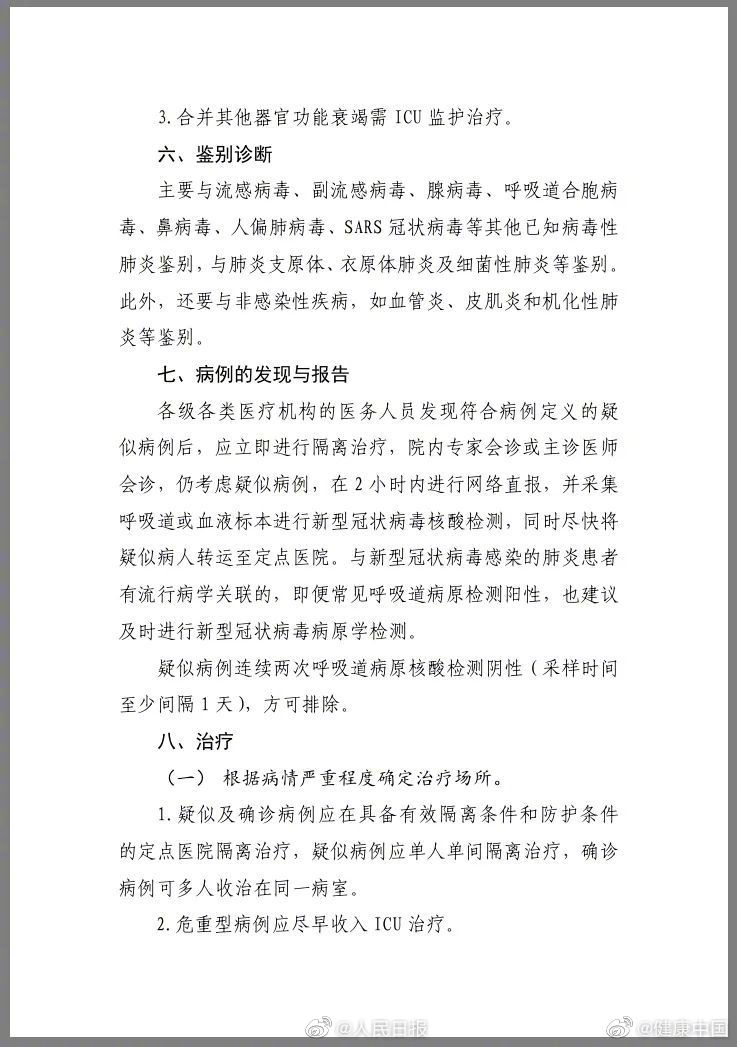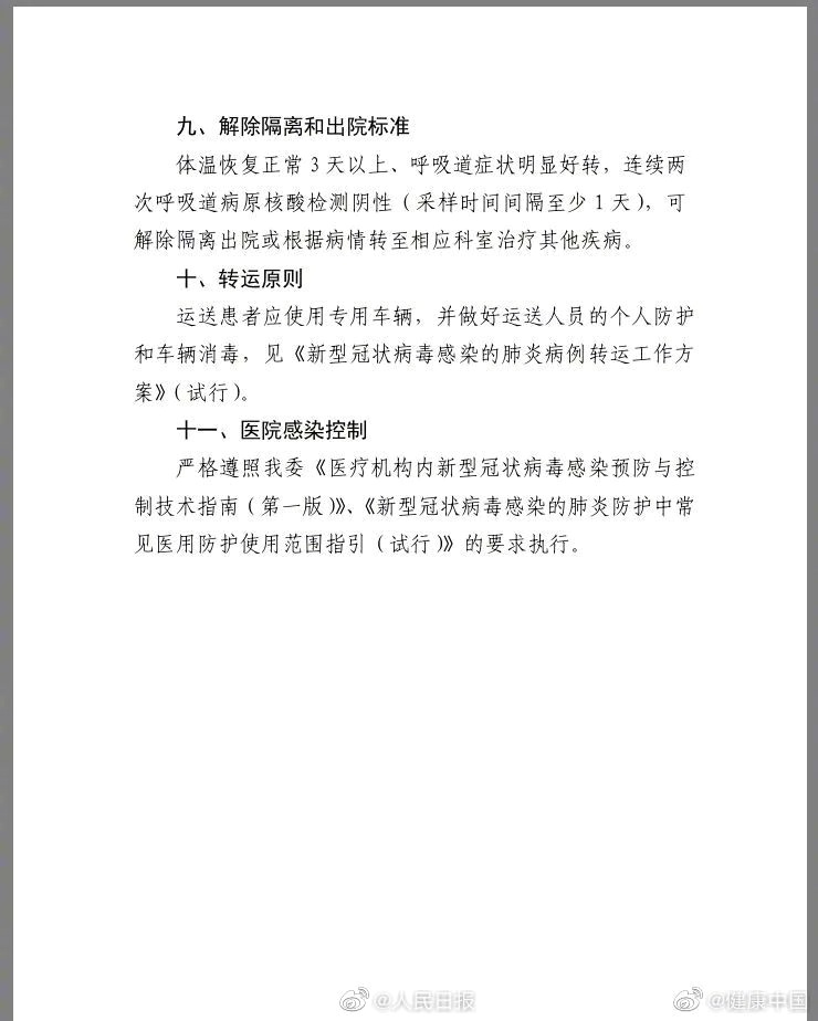 ⑨解除隔离和出院标准:体温恢复正常3天以上、呼吸道症状明显好转,连续两次呼吸道病原核酸检测呈阴性;