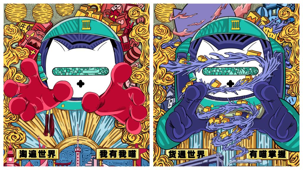 (《爱喜猫购世界》 全国赛区平面类三等奖 学生:张羽浩 指导教师:郑宇)