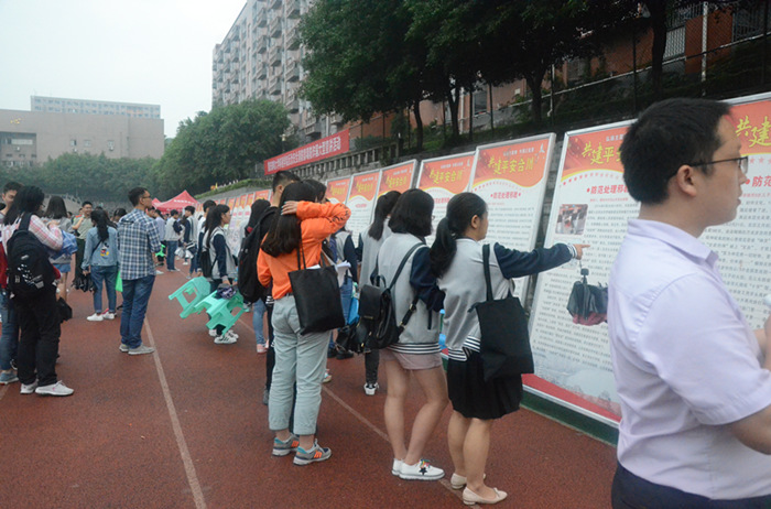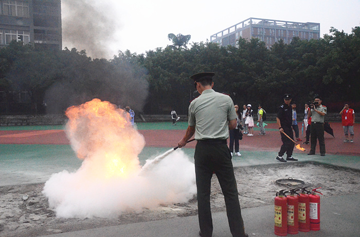 讲座结束后,同学们还参观了近年来合川区公安局为提高合川人民安全所组织开展的一些活动的宣传展板,让大家充分了解到毒品的危害,以及防范火灾的一些知识。消防员们还在现场示范灭火器的使用方法,并组织同学进行体验。