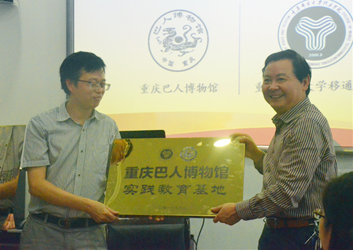 九龙坡区文化委副主任胡荣华代表巴人博物馆发言。他高度赞扬了我校在文化建设上的成就,提出博物馆要走出去,多进行科普、文化以及历史的宣传,使大学生熟知重庆巴人的历史,借助世界博物馆日加强科技文化和爱国主义教育宣传,把馆校的优质资源结合起来,培育合格的大学生。同时,胡主任也对巴人博物馆进行了介绍。巴人博物馆是经重庆市文化局(文物局)批准正式成立,国内唯一专门展示巴人、巴国、巴文化的中型博物馆。重庆巴人博物馆主要反映巴人生息敷衍的生活历史,陈列布展以科学真实为原则,以生动通俗为目标,集历史性、趣味性、艺术性、参与性为一体。布展内容以九龙坡区铜罐驿冬笋坝出土的巴人墓葬发掘的文物和近年来三峡巴文化考古的重大发现为重点,主要有巴人船棺、青铜器、陶器、石器、玉器、杂类等文物,并充分利用直观场景、雕塑、图片和文字说明,为观众了解、感受、体验巴文化提供了难得的场所。