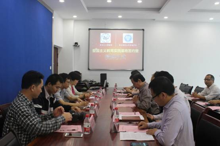 9月29日,重庆邮电大学移通学院与重庆巴人博物馆在行政楼417会议室,举行爱国主义教育实践基地签约仪式。出席此次仪式的嘉宾有九龙坡区文化委副主任胡荣华先生、巴人博物馆书记刘光霞女士以及博物馆随同人员。我校党委书记苏开荣、院长张德民教授、副院长尹帮满博士、教务处副处长刘枚、新闻宣传中心主任苏述庚、思政教学部主任邓燕以及思政教学部主要老师出席了此次签约仪式。签约仪式由邓燕主任主持。