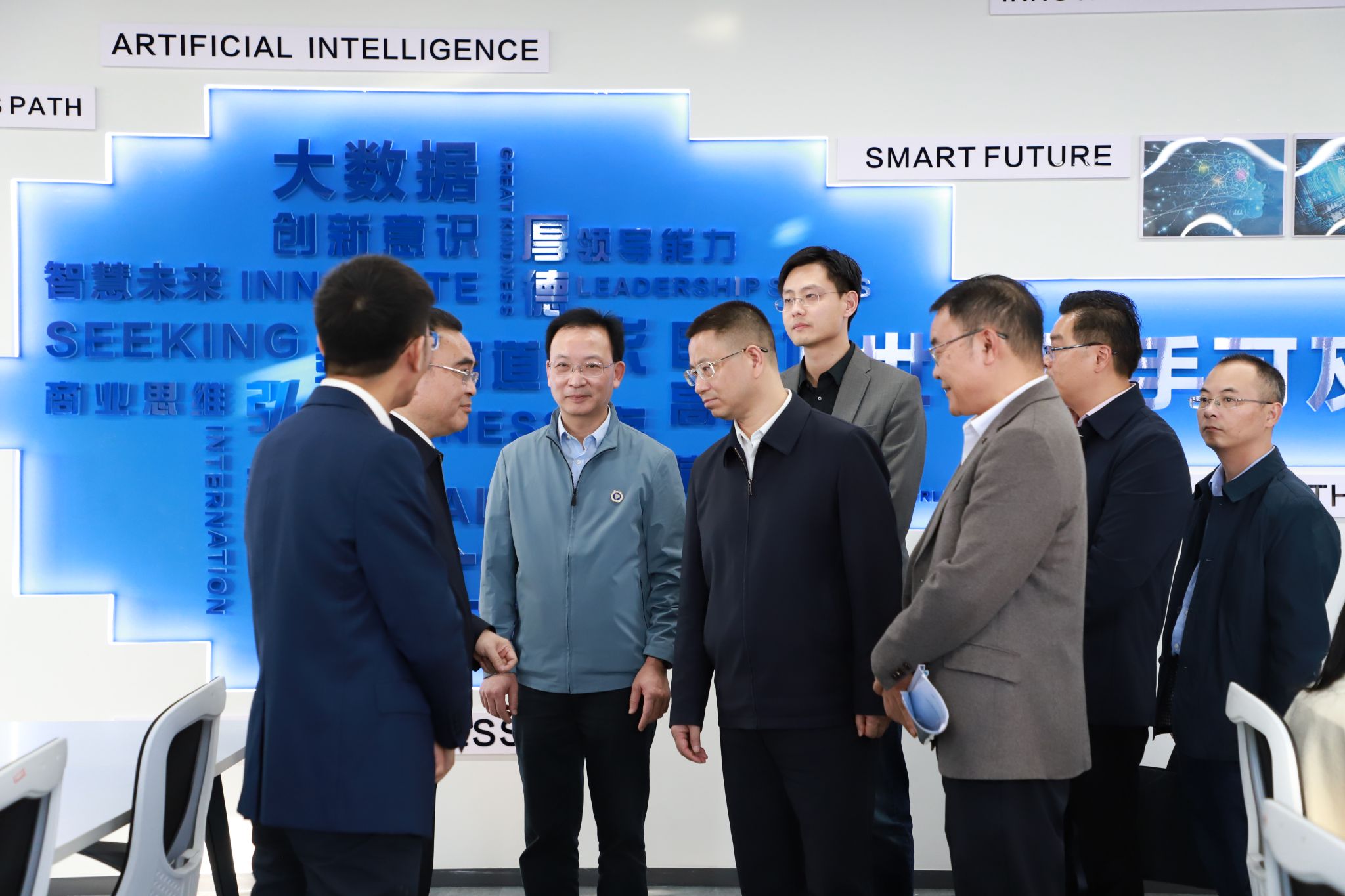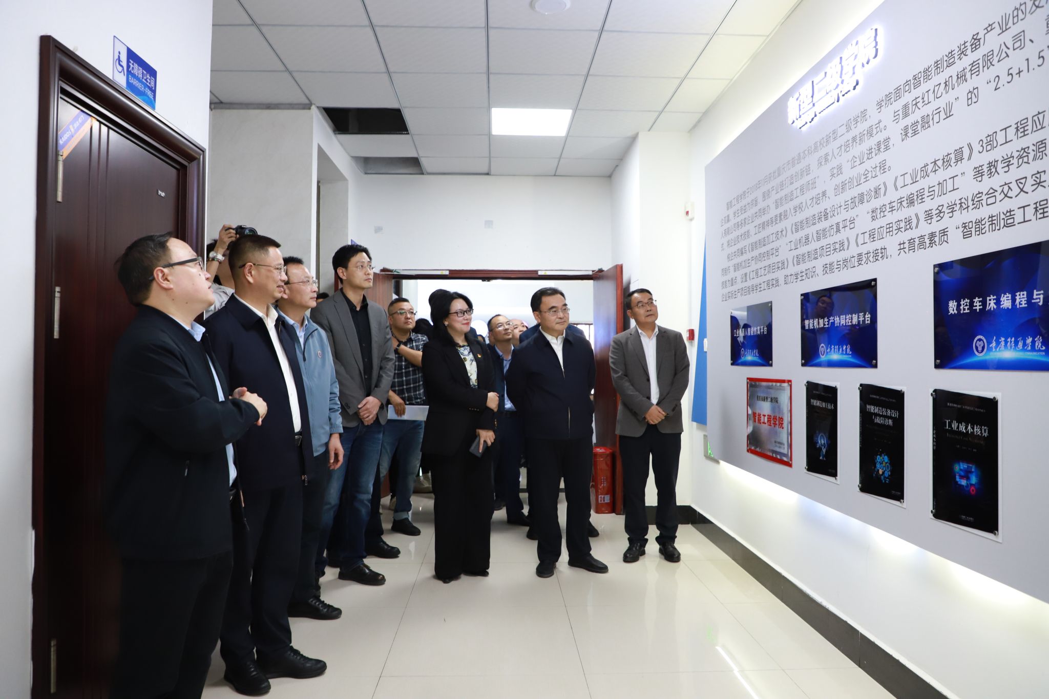 仪式前,与会人员参观我校专业教育阵地、智慧教室、创新创业学院及双体软件精英产业学院,一行对我校产教研用融合建设具象化表示赞扬与肯定。