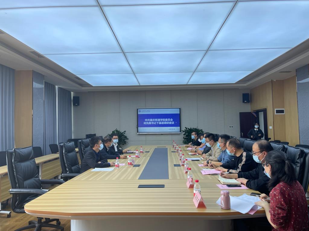 为了解我校基层党建情况,推动党建工作发展,10月4日至10月21日,我校党委书记何先刚走访了各二级学院党总支、綦江校区党委及马克思主义学院党支部,实地察看基层党组织阵地建设,召开调研座谈会,深入了解基层党建工作、党费管理、思政教育、意识形态等方面情况。