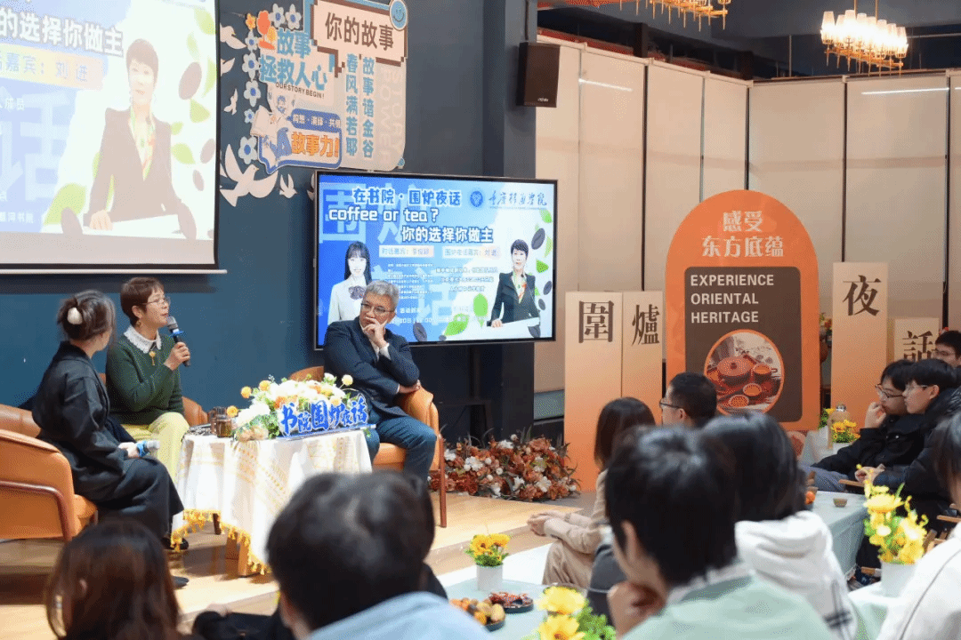 双校区的围炉夜话上,刘进分别以《咖啡与茶,你如何选择?》《coffee or tea?你的选择你做主》为话题,与在场的师生展开交流。
