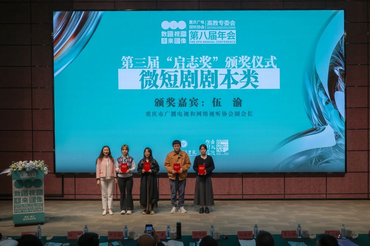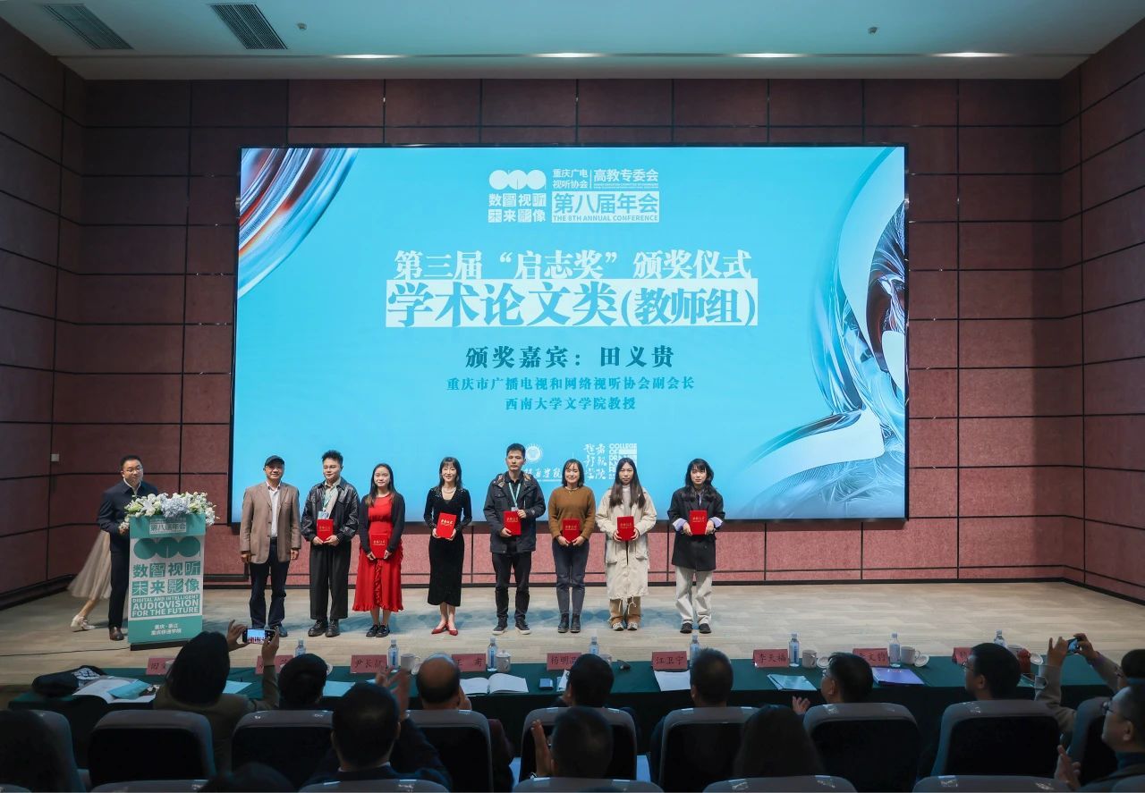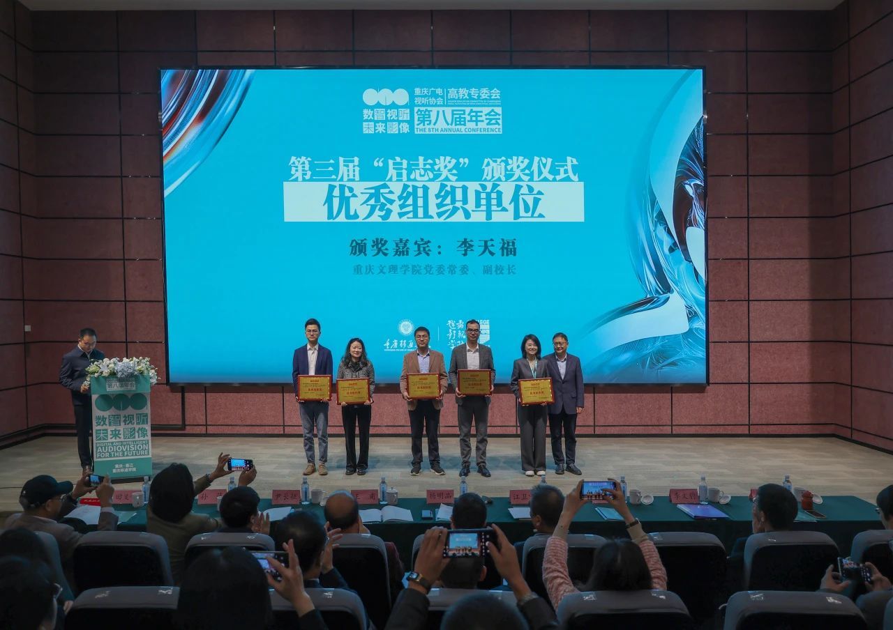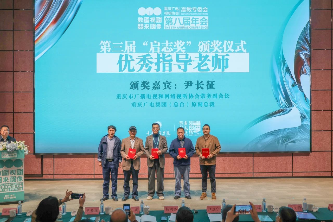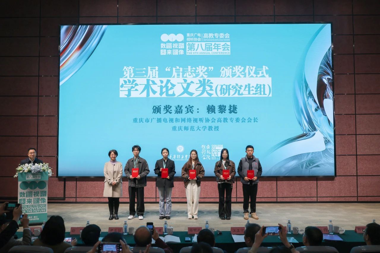 此外,大会还同期举行了第三届“启志奖”颁奖仪式。本届“启志奖”共收到来自近20个院校的近300份优秀作品。重庆市广播电视和网络视听协会副会长兼秘书长冉军现场宣读了获奖名单,并由颁奖嘉宾为获奖教师与学生颁发了荣誉证书并合影留念。