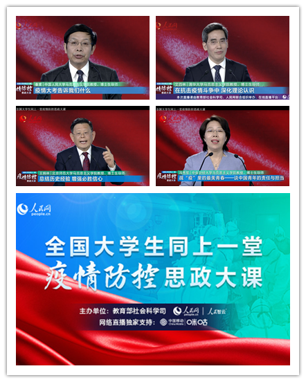 本次授课中,清华大学艾四林、中国人民大学秦宣、北京师范大学王炳林、中央财经大学冯秀军四位教授分别以《在抗击疫情斗争中深化理论认识》《疫情大考告诉我们什么》《总结历史经验增强必胜信心》《战“疫”里90后、80后的“非典型”青春》为题,结合四门思政必修课教学内容,解读了党中央关于疫情防控的决策部署,分析了中国抗疫彰显的中国共产党领导和中国特色社会主义制度的显著优势,讲述了防疫抗疫一线的感人故事,并现场与大学生进行亲切互动,解答了同学们在线提出的问。几位教授将高校思想政治理论课教学优势转化为支持防疫斗争的强大力量,共同用一堂生动的大课,展现了高校思政课的魅力,彰显了思政课作为高校落实立德树人根本任务的关键课程作用。