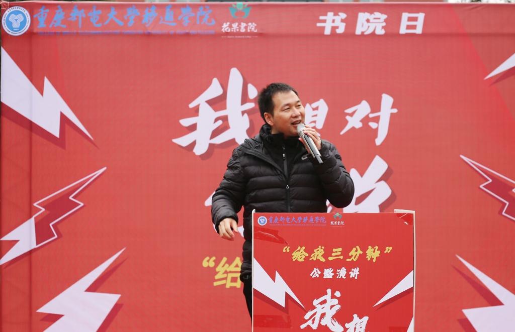 花果书院于黄桷树广场以“我想对你说”为主题开展“给我三分钟”公路演讲暨院长精品课。黄威同学讲述了他和室友们的有趣经历;蒋枚岚同学分享了她的恋爱经历,引得大家频频发笑;被辩论改变了生活的张俊康同学让大家发现了“辩论”的新意义;邹雅兰取下口罩,和自己和解。最后,名誉院长谢海山老师在此后对同学们的发言进行了总结,他从“语调”“节奏”“逻辑”“普通话标准”等几个方面向同学们普及了演讲的技巧。
