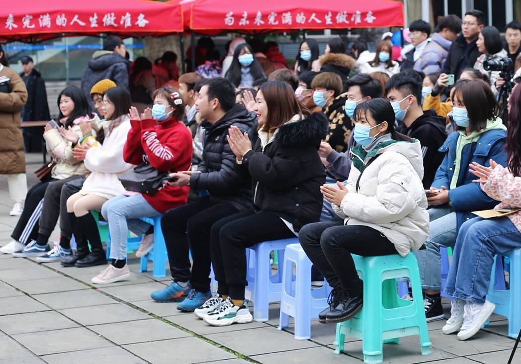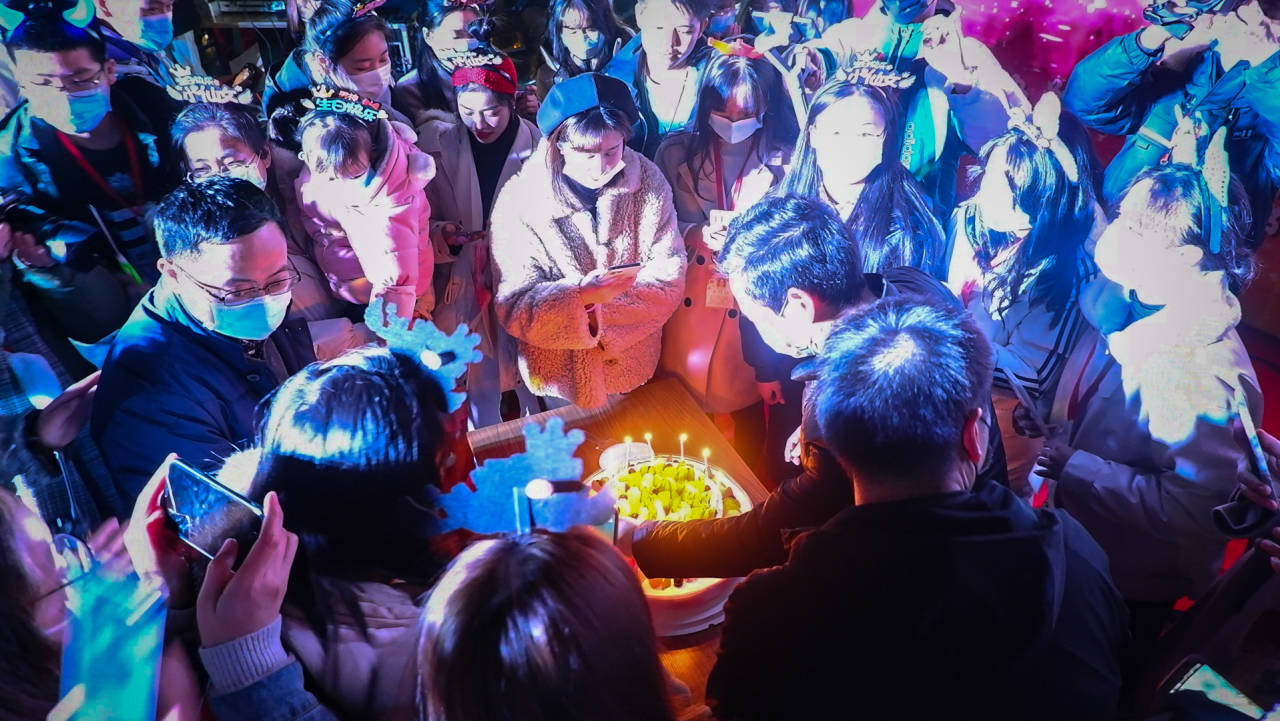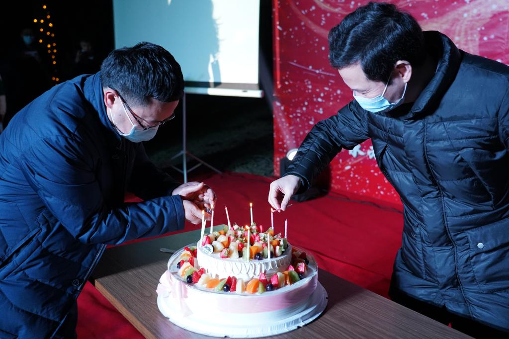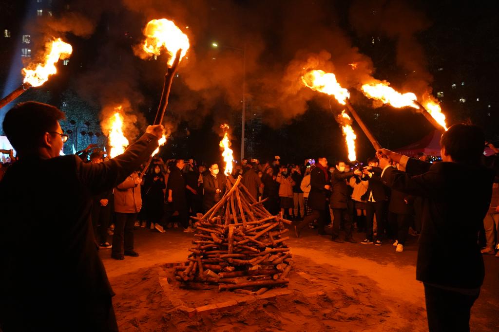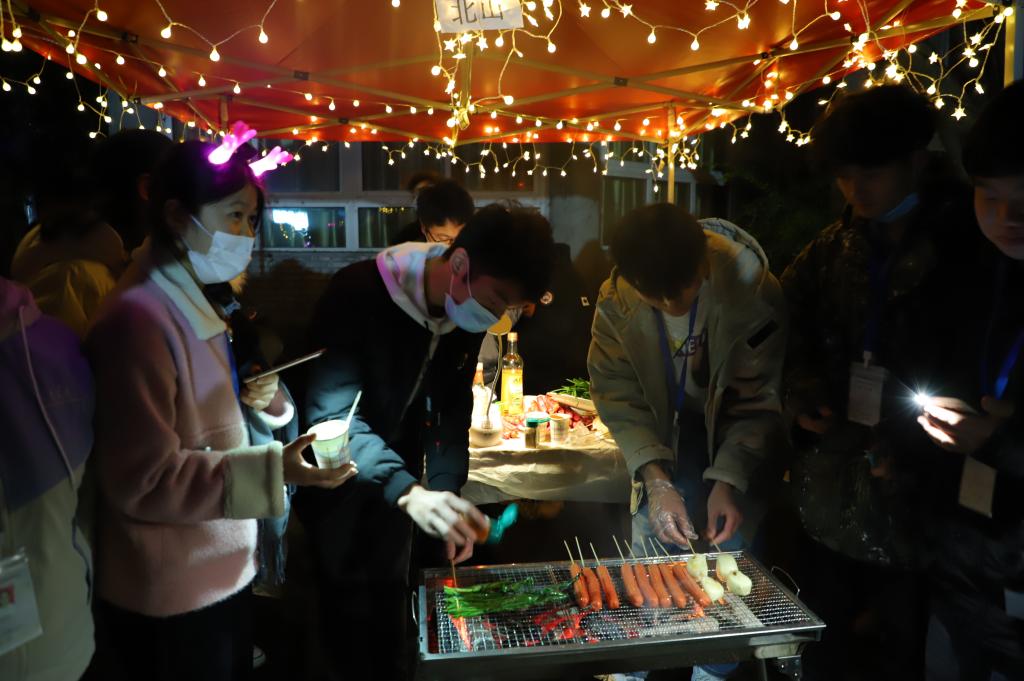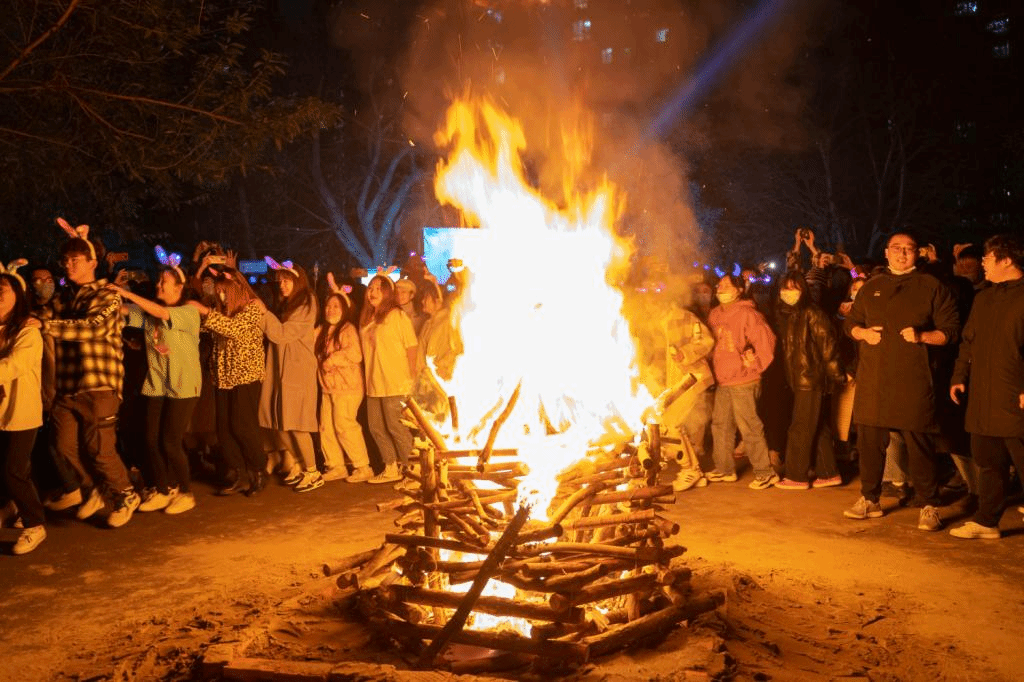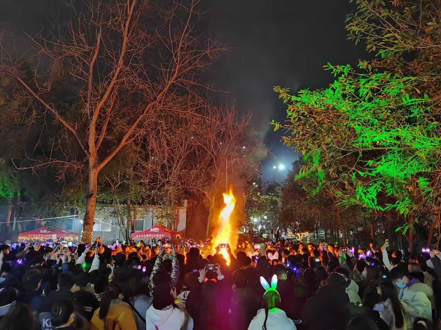 当深冬的夜色开始朦胧,学校读者公园的簇簇篝火开始被点燃,火焰翻腾,仿佛有了生命,瞬间有了温度。校领导、书院名誉院长以及全校师生在读者公园相聚,以书院家人之名,共同在“燃·正青春”主题篝火晚会现场载歌载舞。活动现场设置有篝火燃烧区、舞台表演区、自助烧烤区、酒会交流区四个区域。同时,12月份过生日的师生也团聚在现场,感受家人的祝福、陪伴和共融。当晚活力四射的开场表演结束后,师生们共同观看了生日祝福视频,一一许下生日愿望。