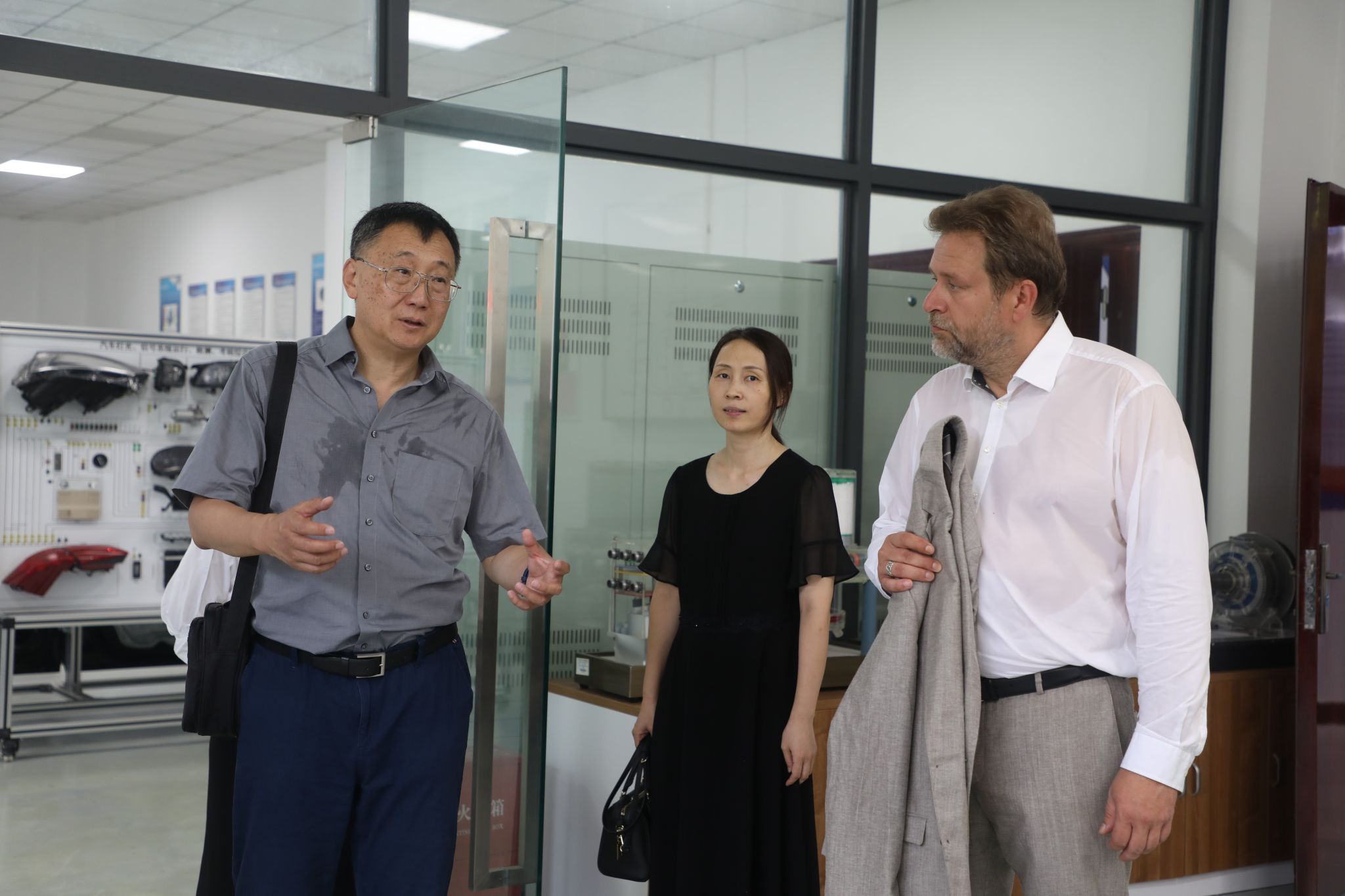 在智能工程学院实训室实地考察过程中就智能工程专业教育交流经验,我校展示车辆工程、机械制造等学生实际操作设备与环境,我校注重实训设备更新,因材施教创新教学方式。